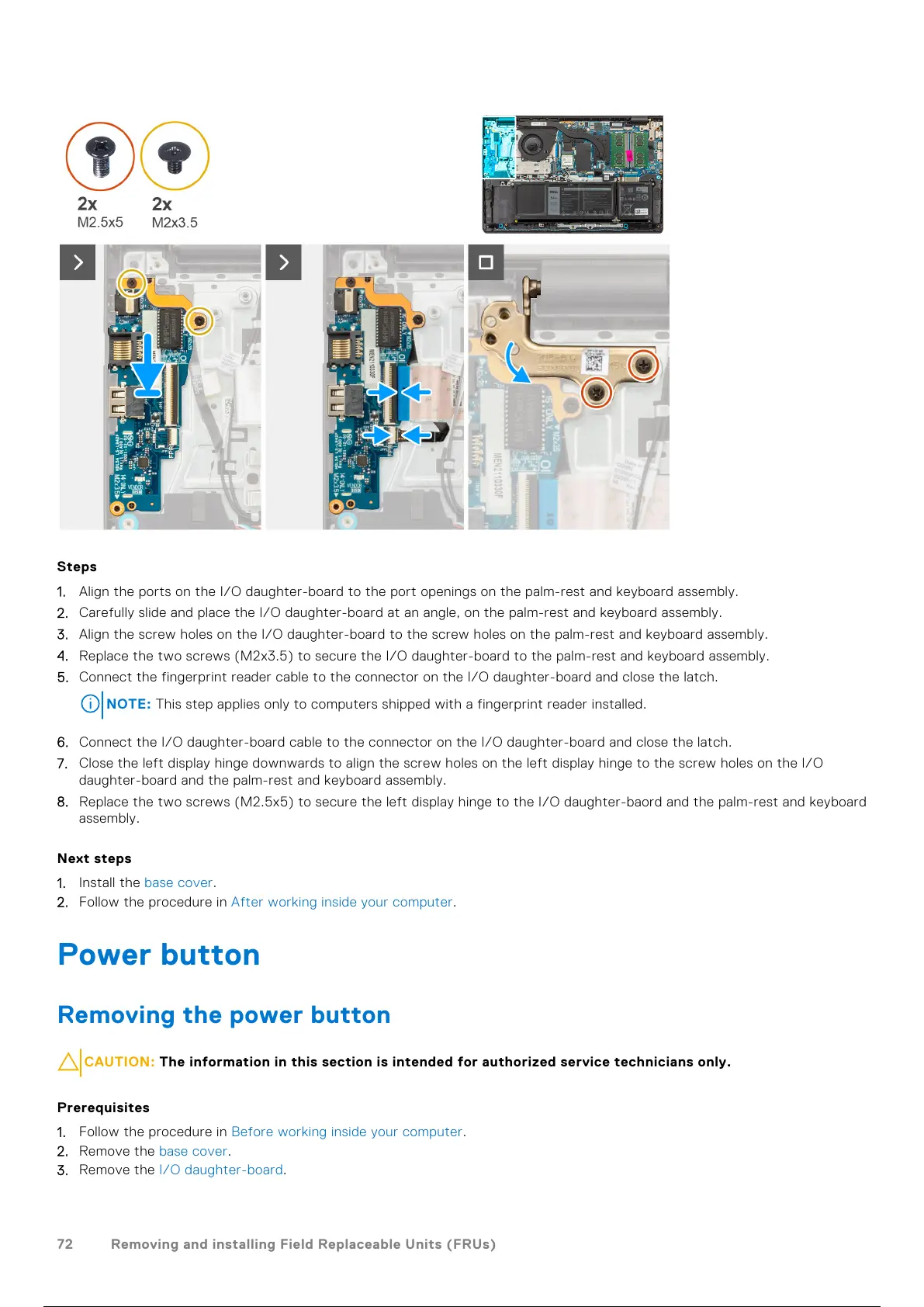 4. Replace the two screws (M2x3.5) to secure the I/O daughter-board to the palm-rest and keyboard assembly.