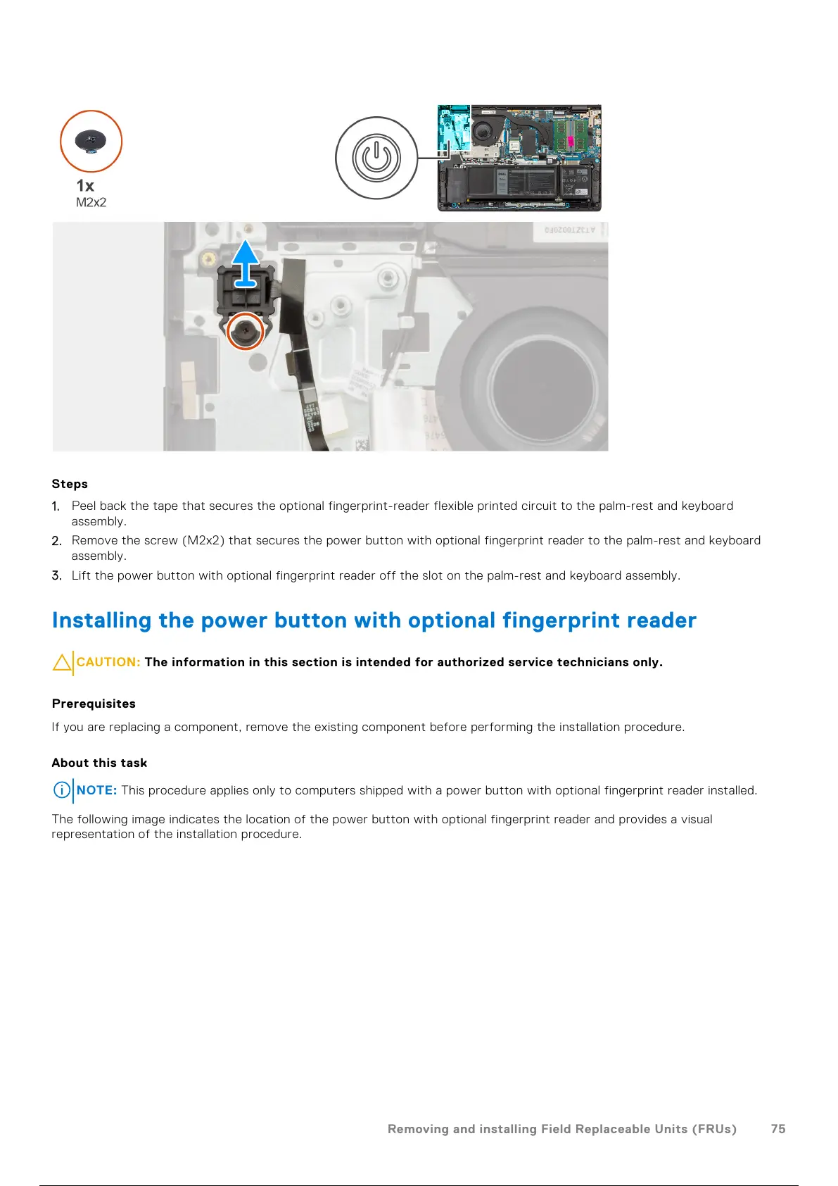 NOTE: This procedure applies only to computers shipped with a power button with optional fingerprint reader installed.