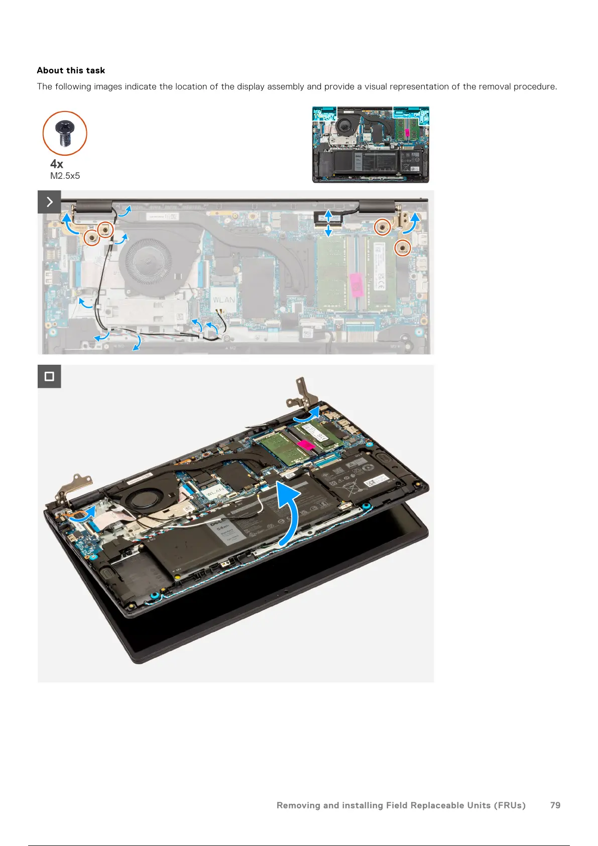 The following images indicate the location of the display assembly and provide a visual representation of the removal procedure.