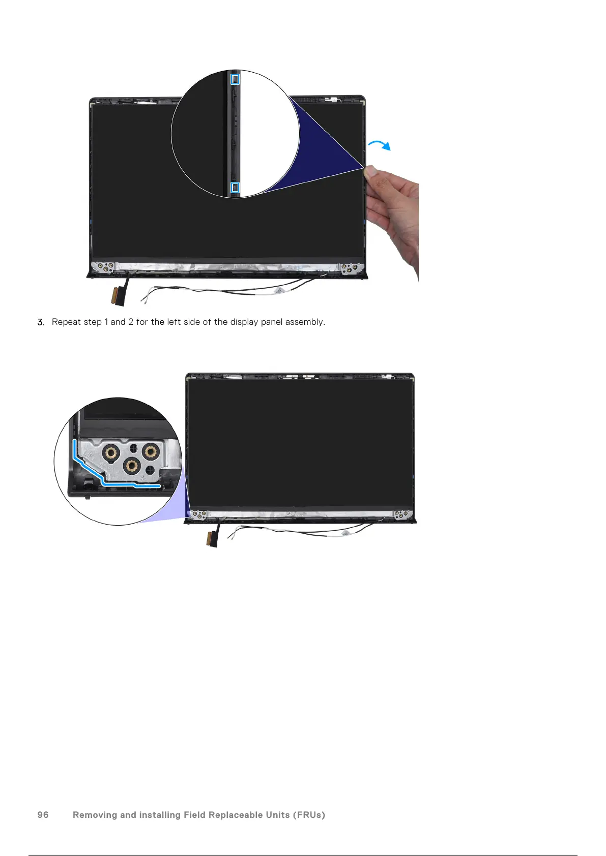 3. Repeat step 1 and 2 for the left side of the display panel assembly.