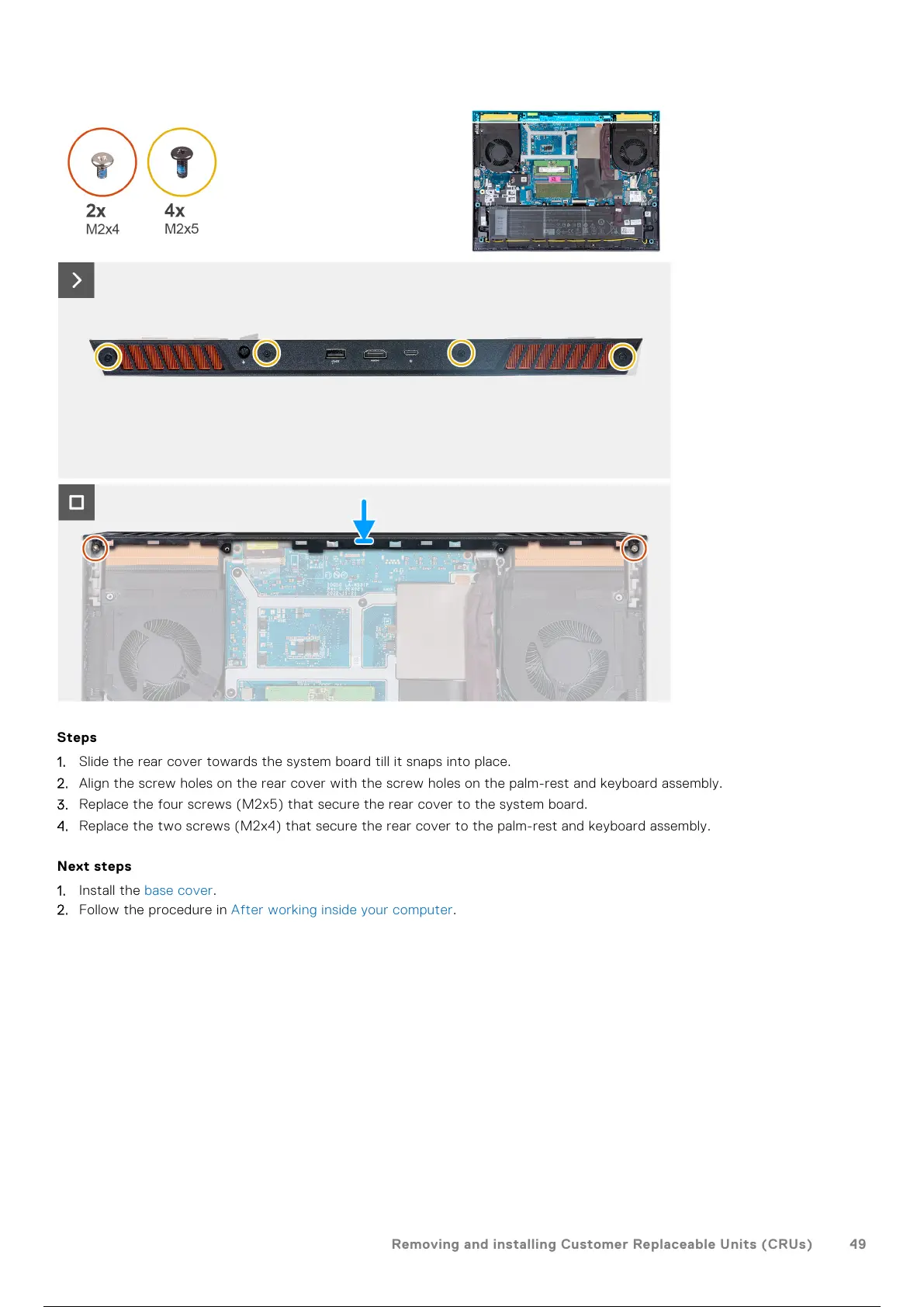 1. Slide the rear cover towards the system board till it snaps into place.
