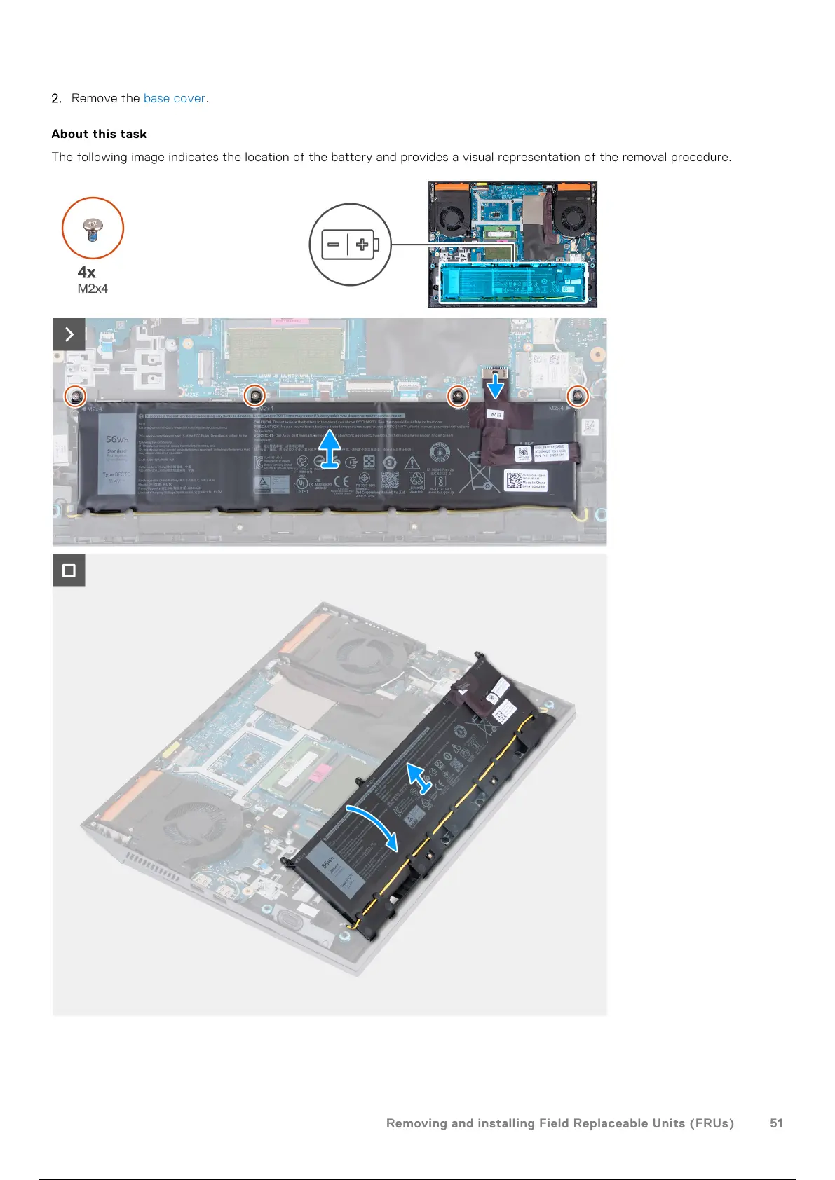 The following image indicates the location of the battery and provides a visual representation of the removal procedure.