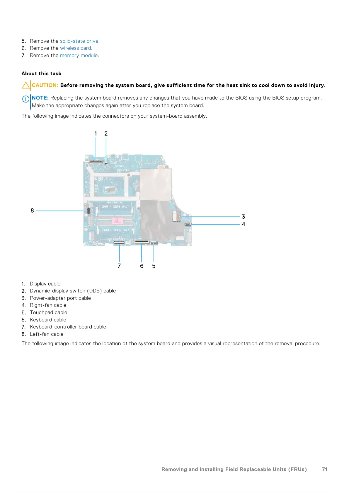 The following image indicates the location of the system board and provides a visual representation of the removal procedure.