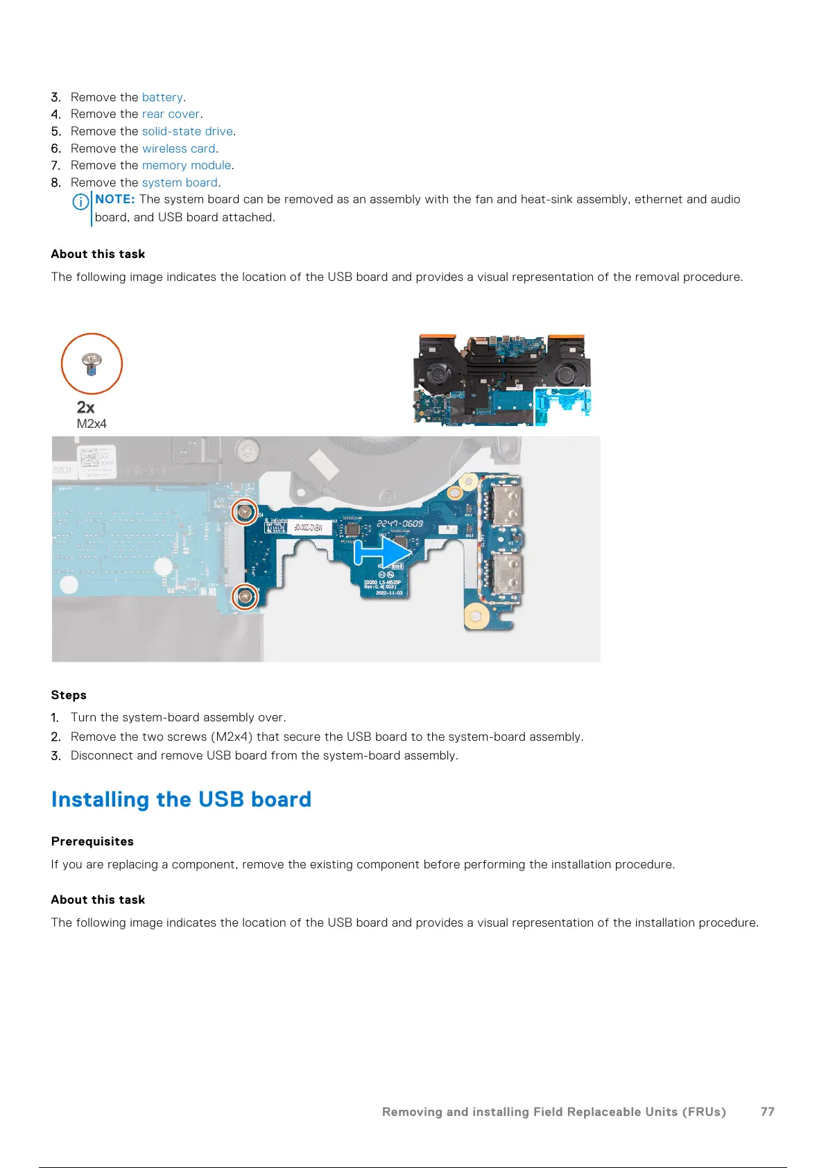 3. Disconnect and remove USB board from the system-board assembly.