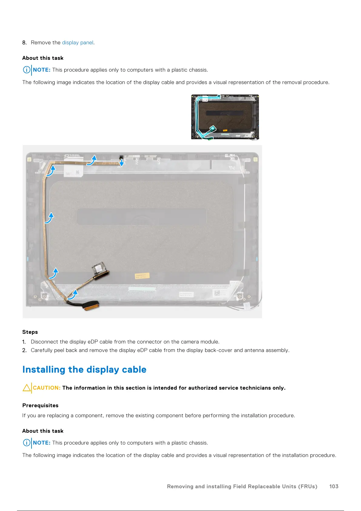 2. Carefully peel back and remove the display eDP cable from the display back-cover and antenna assembly.