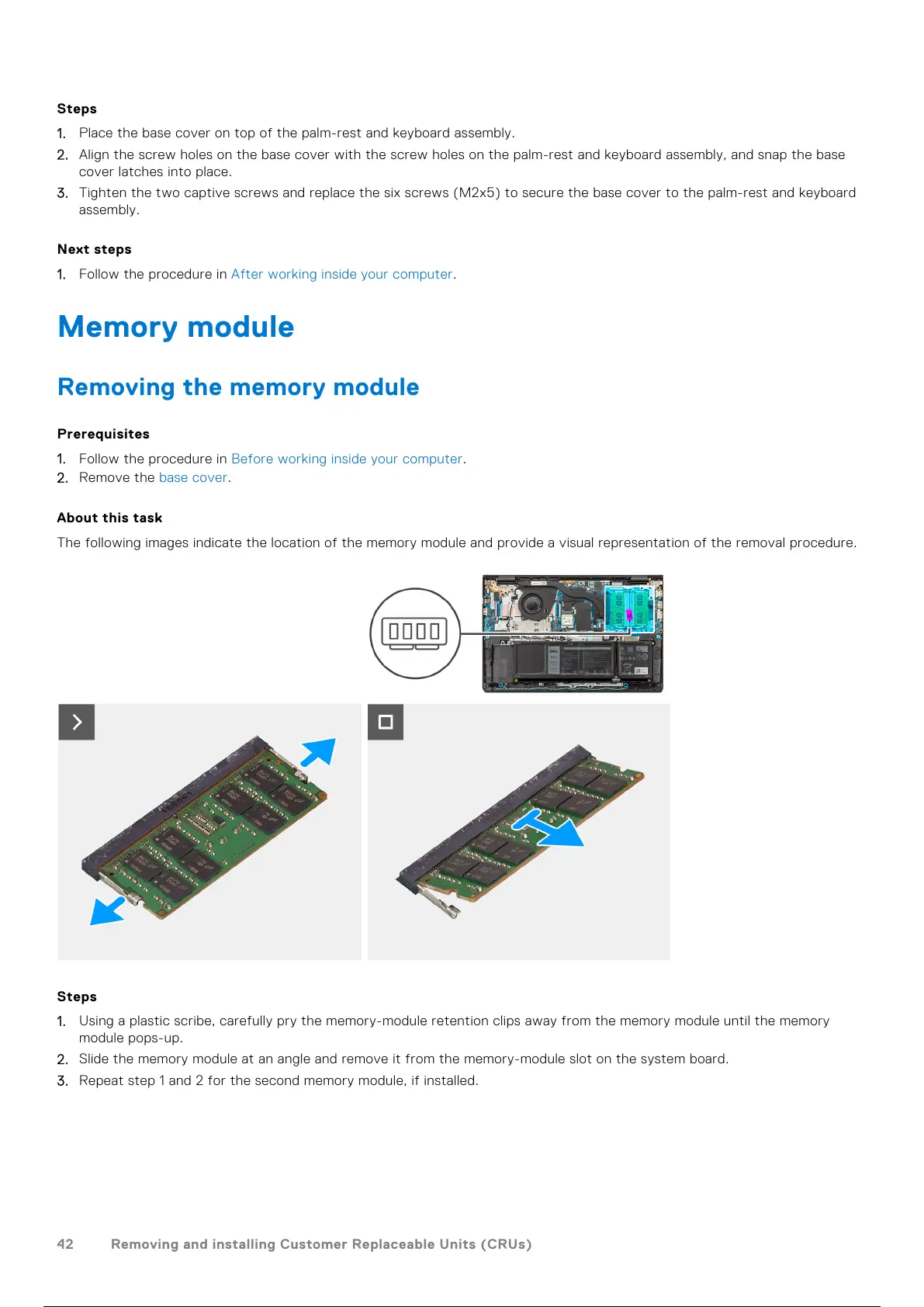 The following images indicate the location of the memory module and provide a visual representation of the removal procedure.