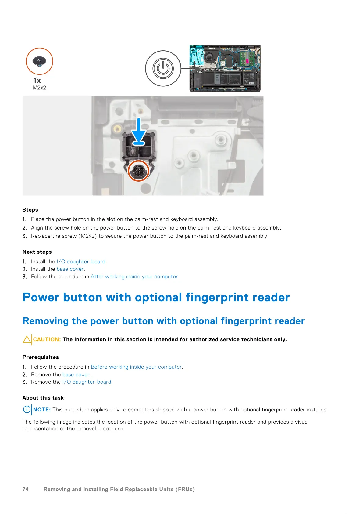 NOTE: This procedure applies only to computers shipped with a power button with optional fingerprint reader installed.