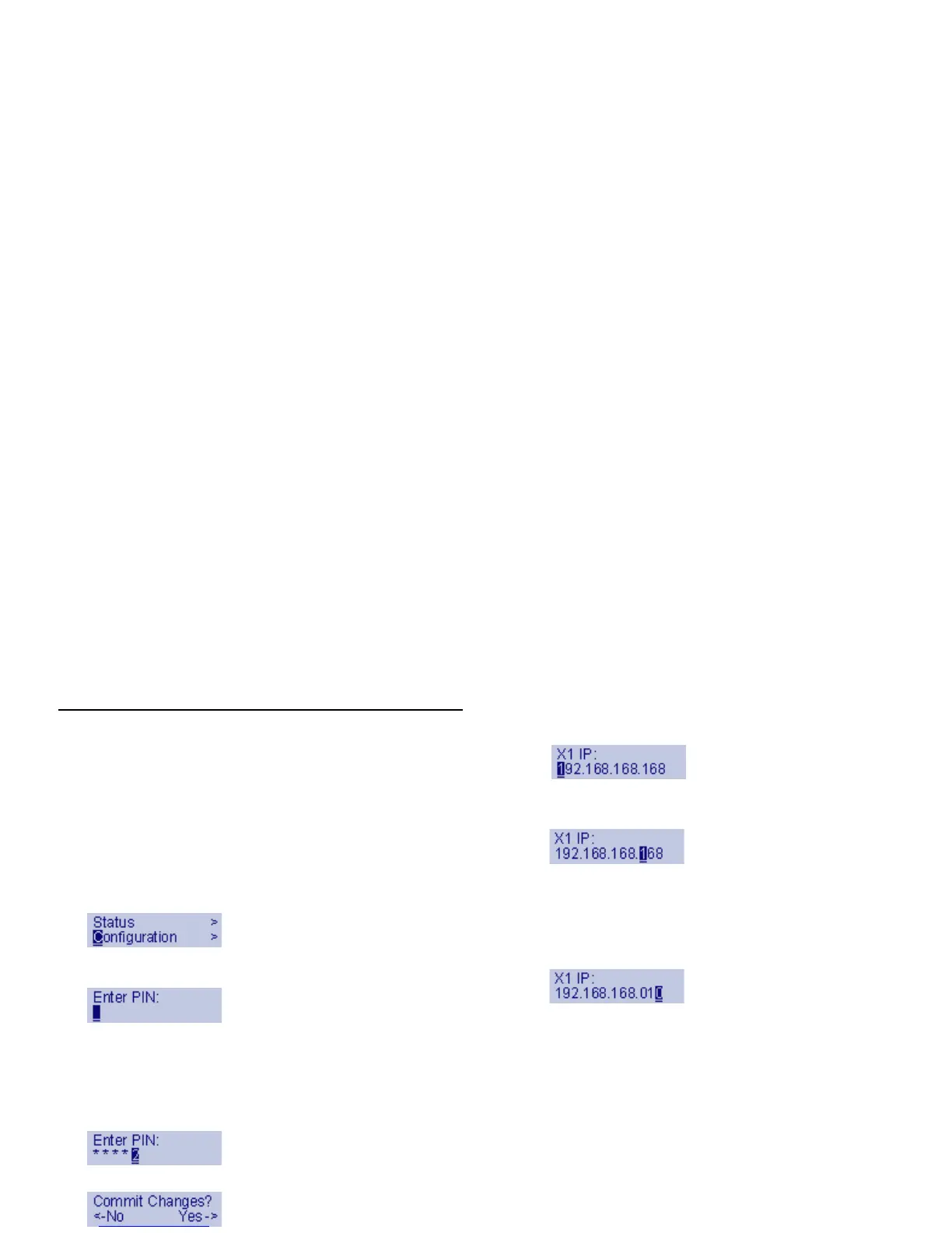 12. Press Right to configure X1 IP.