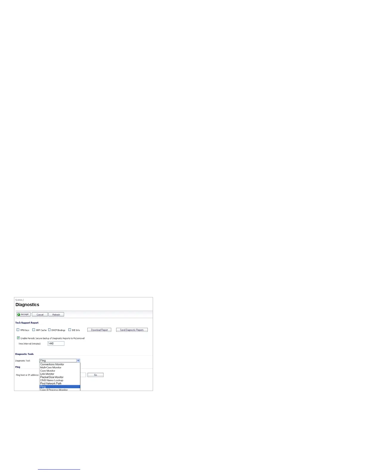 Ping is available on the System > Diagnostics page.