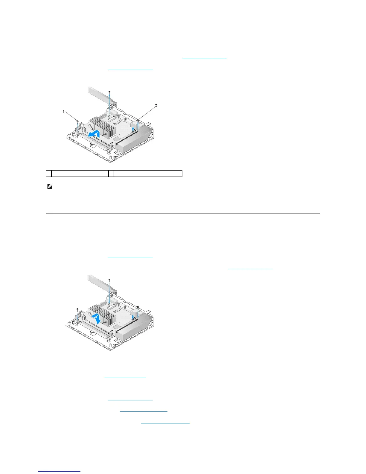 11. Remove the two screws on the back corners of the system board that secure it to the chassis.