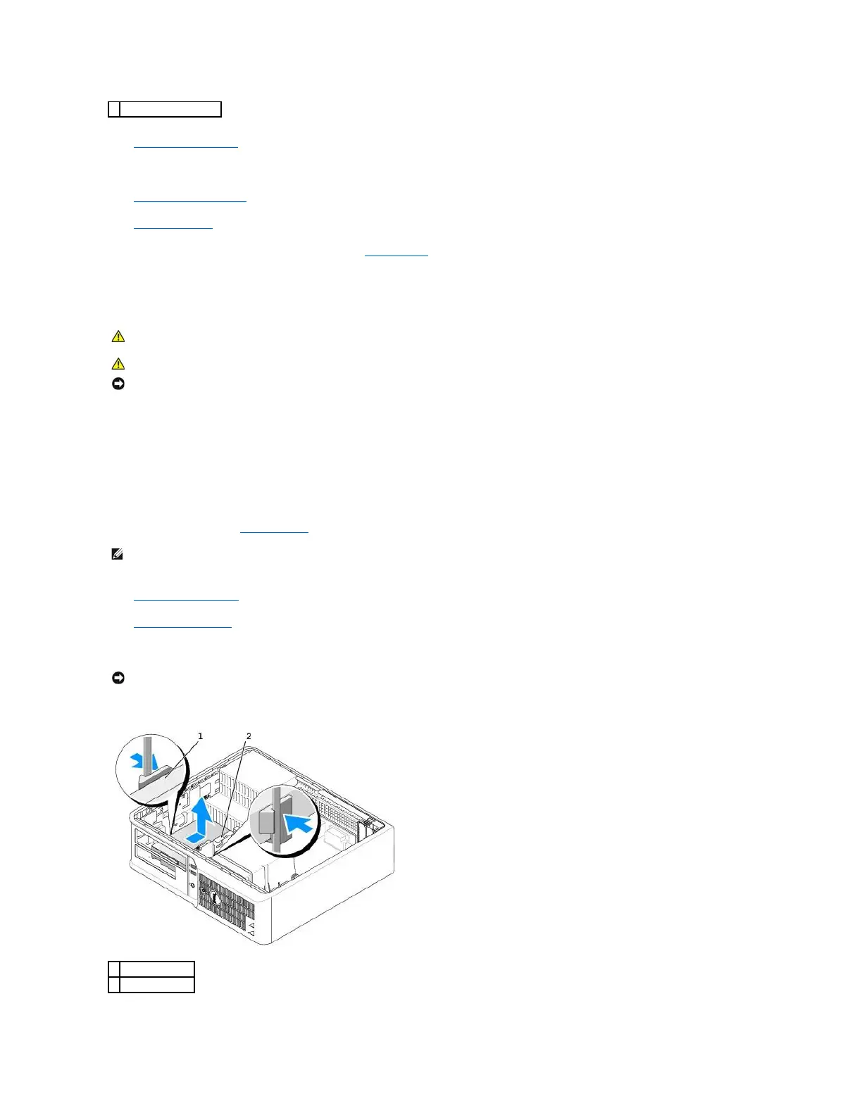 4. Press in on the two plastic securing clips on each side of the drive and slide the drive towards the back of the computer.