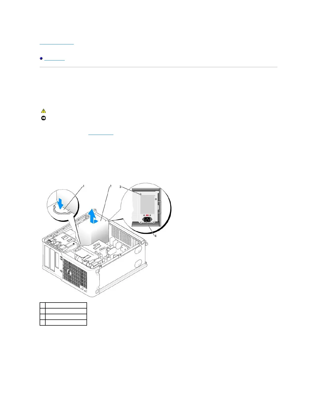 5. Slide the power supply toward the front of the computer by approximately 1 inch.