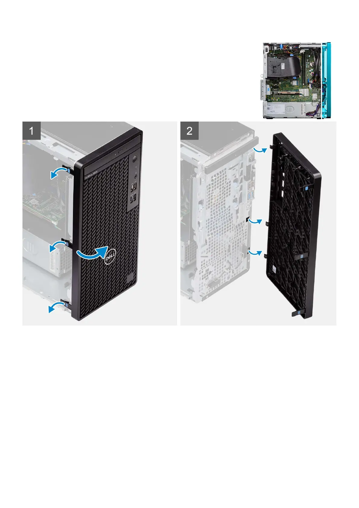 2. Slightly pull the front bezel and gently rotate to release the other tabs on the bezel from the slots in the computer chassis.