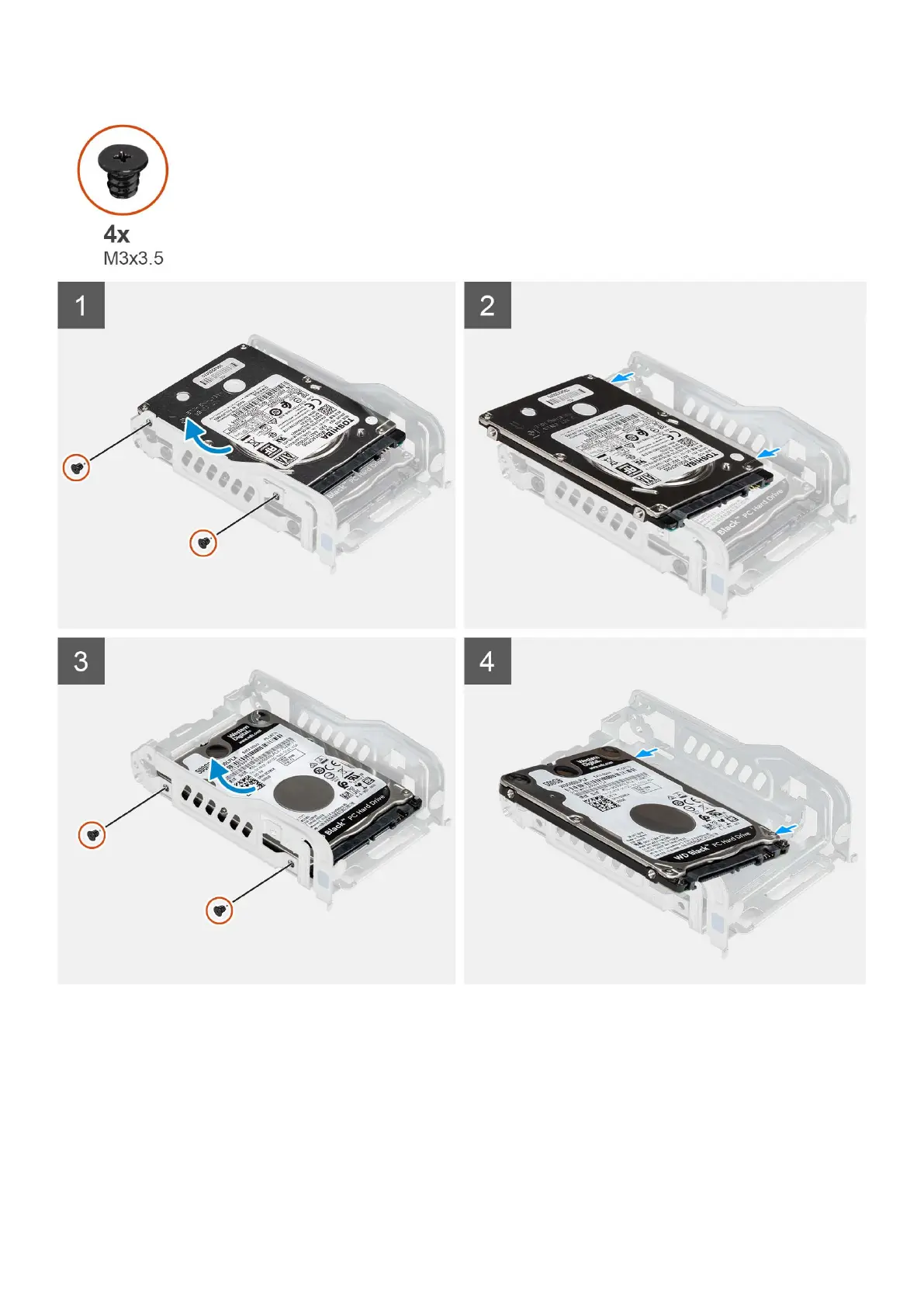 1. Remove the two (M3x3.5) screws that secure the primary 2.5-inch hard drive to the hard drive bracket.