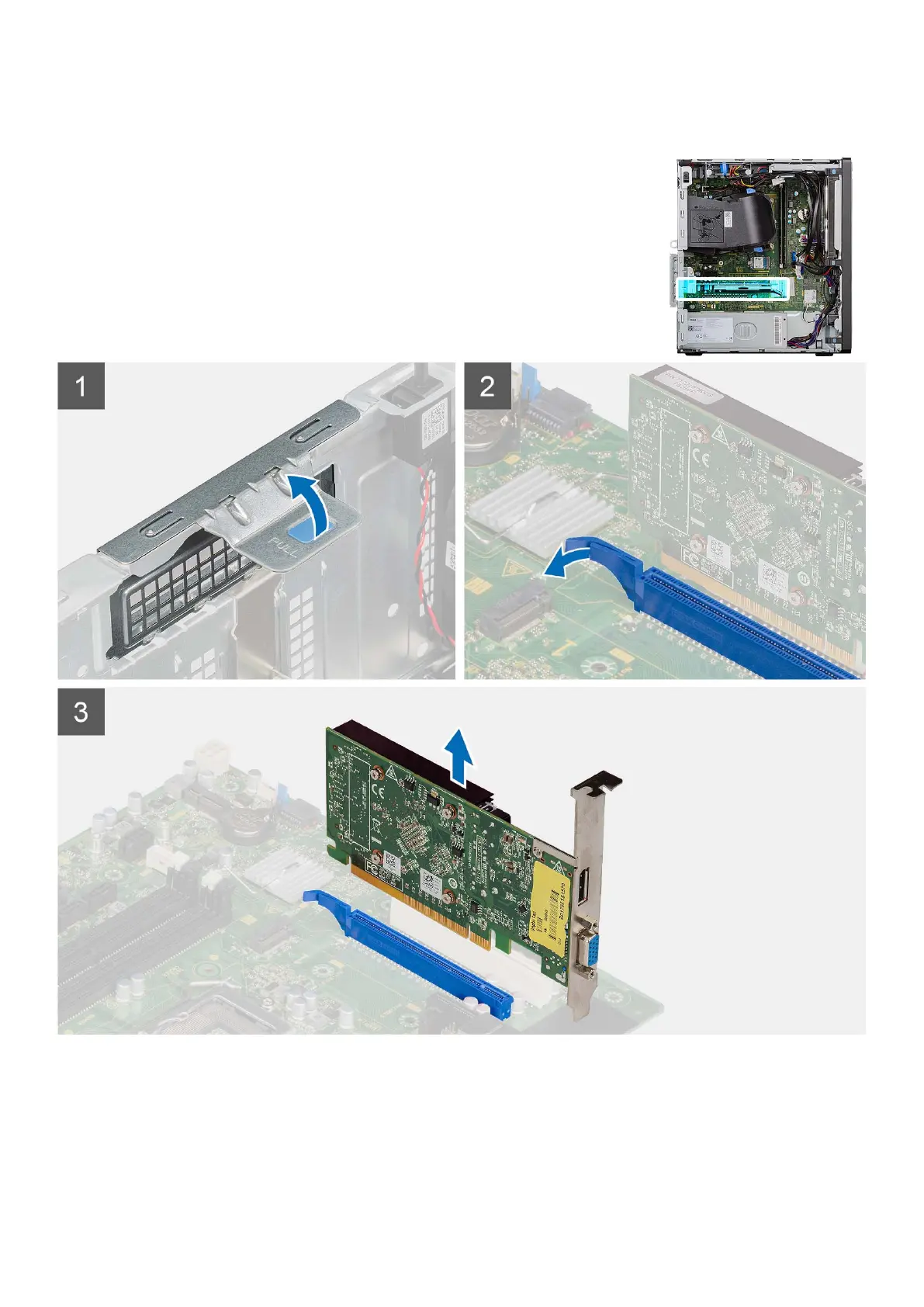 The following images indicate the location of the graphics card and provide a visual representation of the removal procedure.