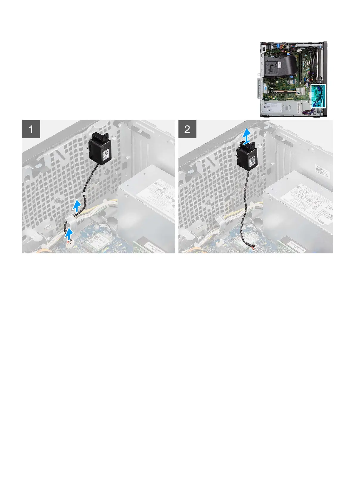 3. Press the tab and slide the speaker along with the cable from the slot on the chassis.