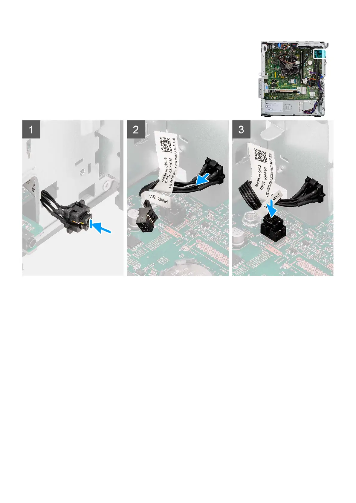 2. Align and connect the power-button cable to the connector on the system board.