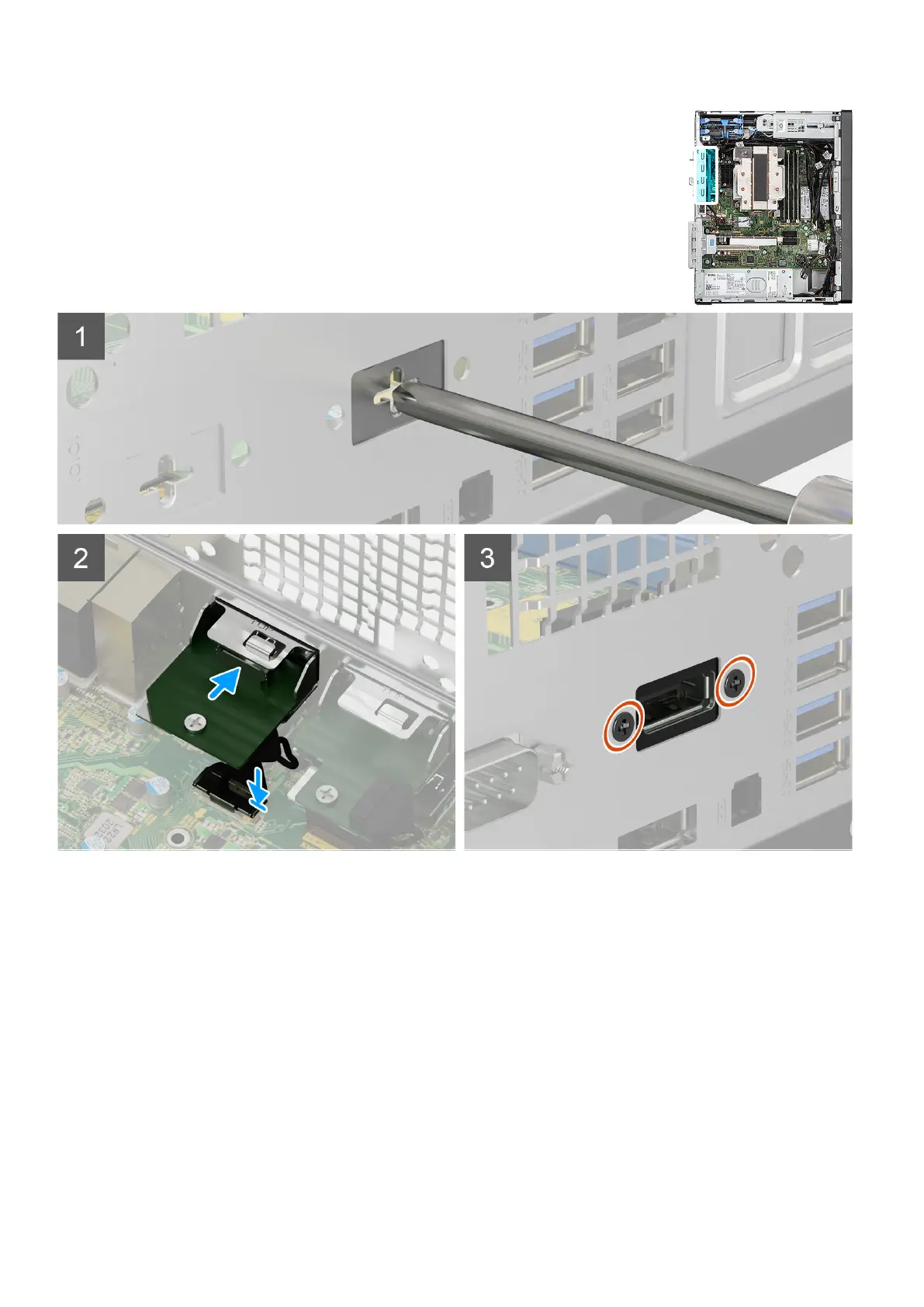 4. Replace the two (M3X3) screws to secure the optional DisplayPort module to the system.