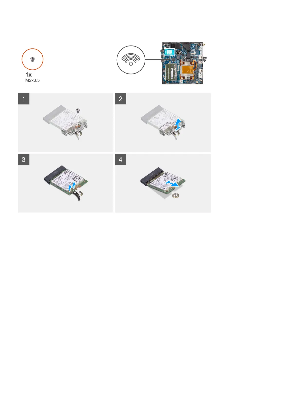 1. Remove the (M2x3.5) screw that secures the WLAN-card bracket and the WLAN card on the system board.
