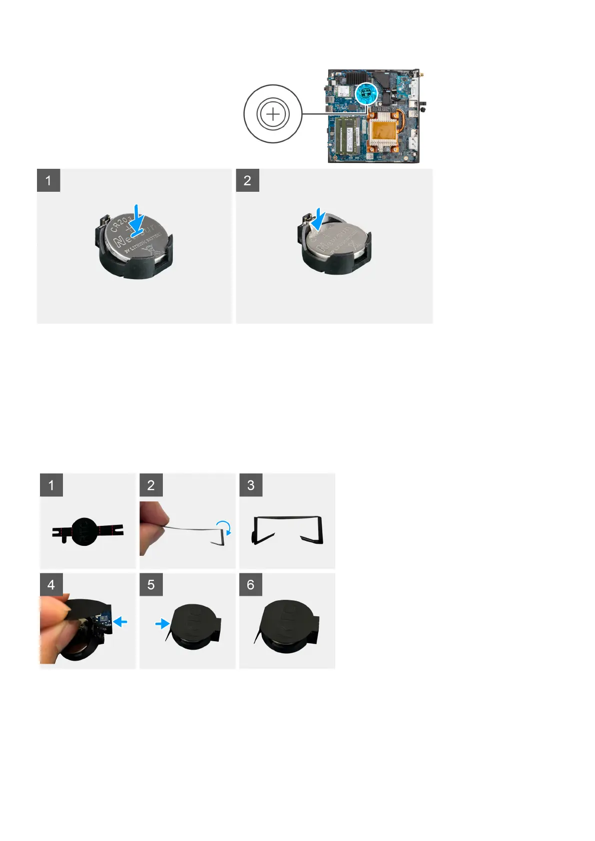 1. Insert the coin cell battery into the coin-cell battery slot on the system board with the "+" sign facing up.