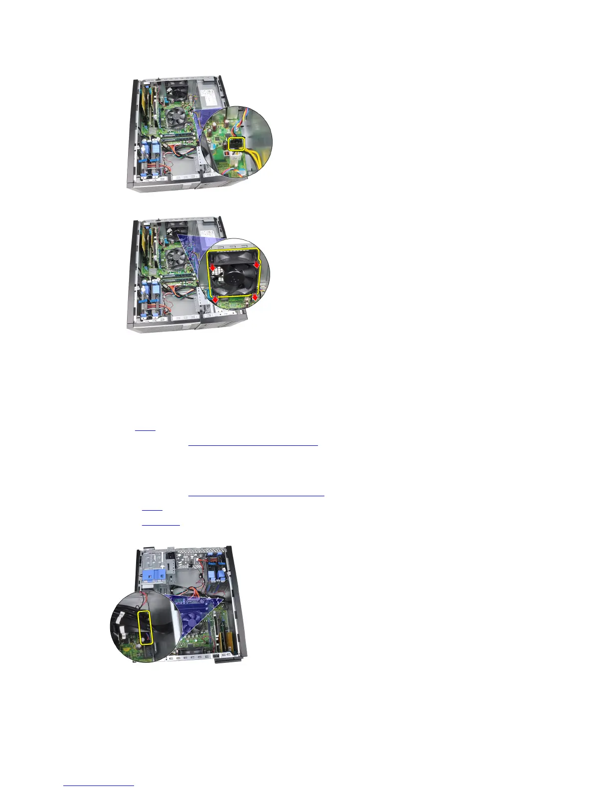 4. Pry and remove the system fan away from the four grommets securing it to the back of the computer.
