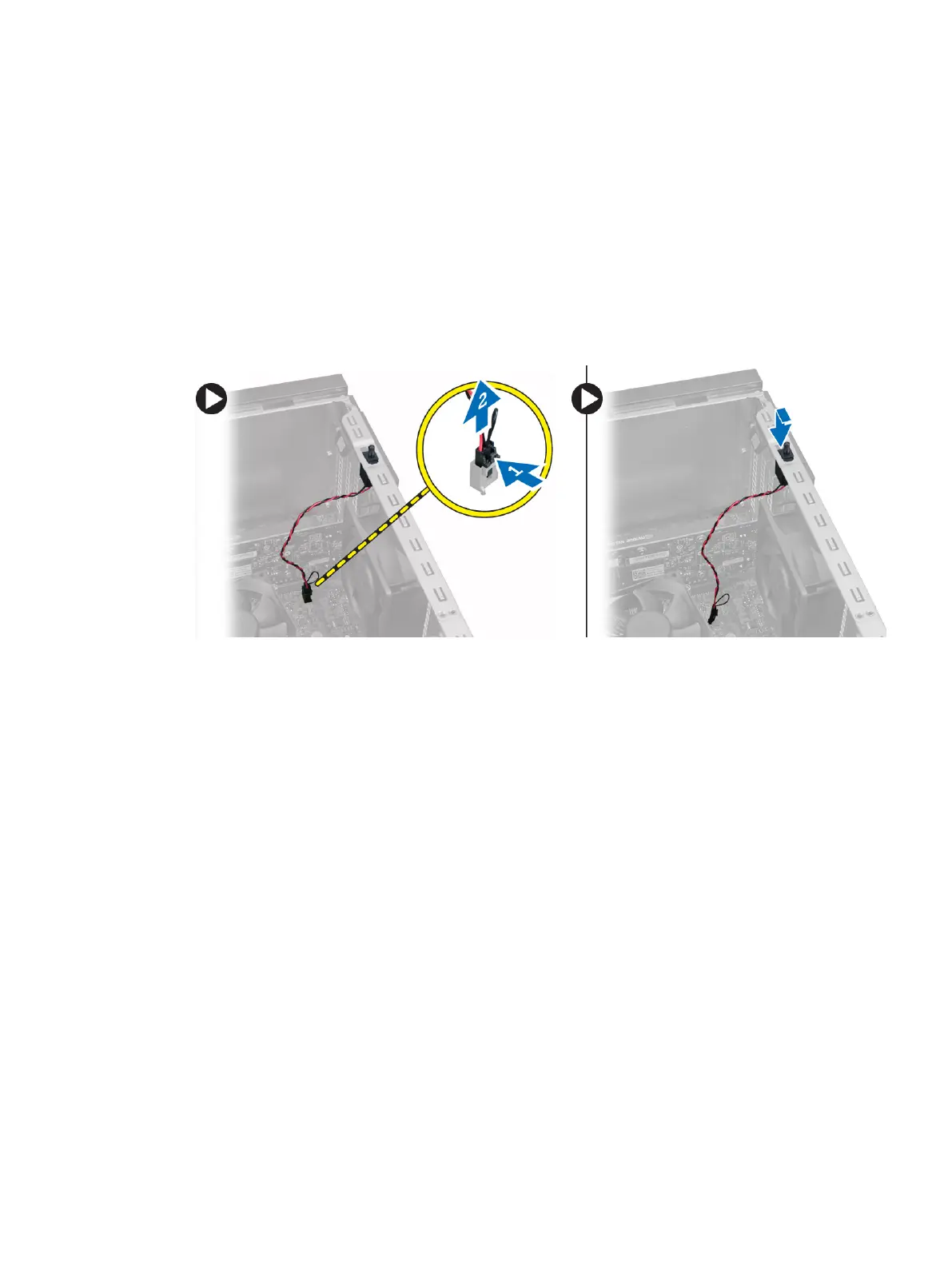 b) Disconnect the intrusion-switch cable from the system board [2].