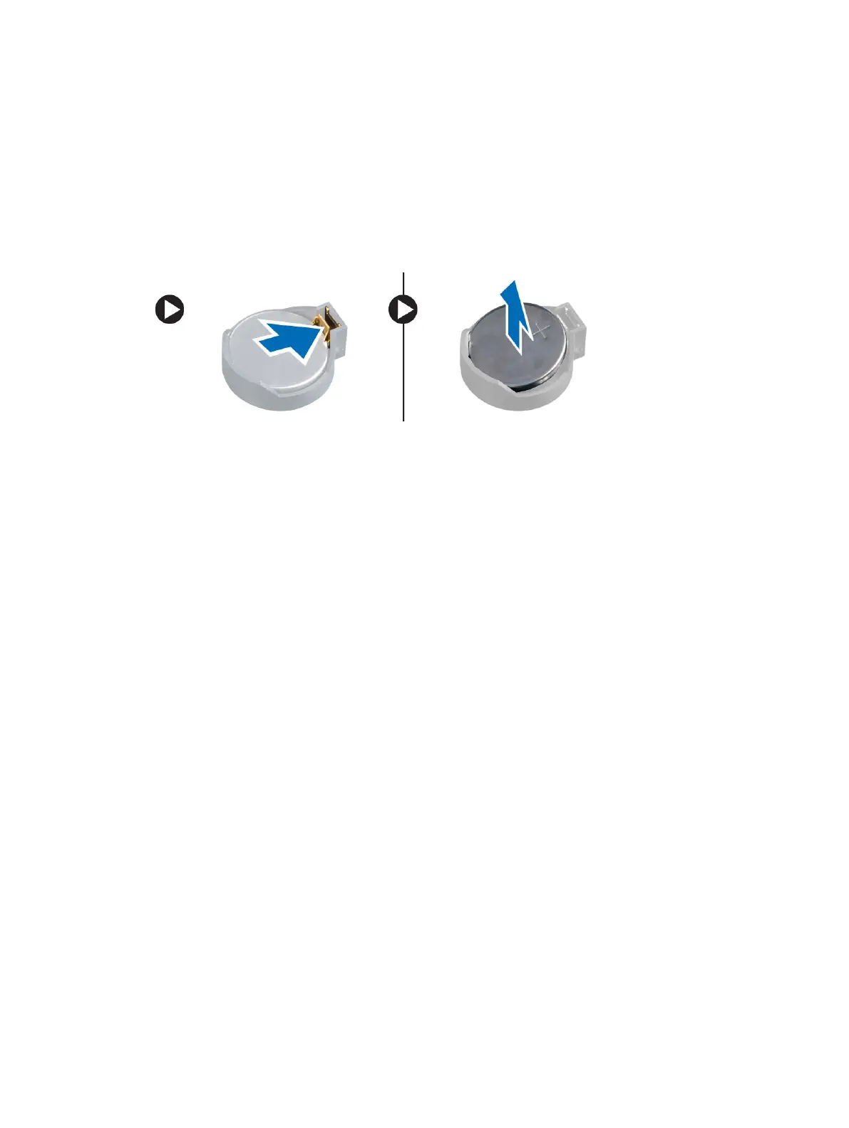 1. Place the coin cell battery in its slot on the system board and press until the release latch springs
