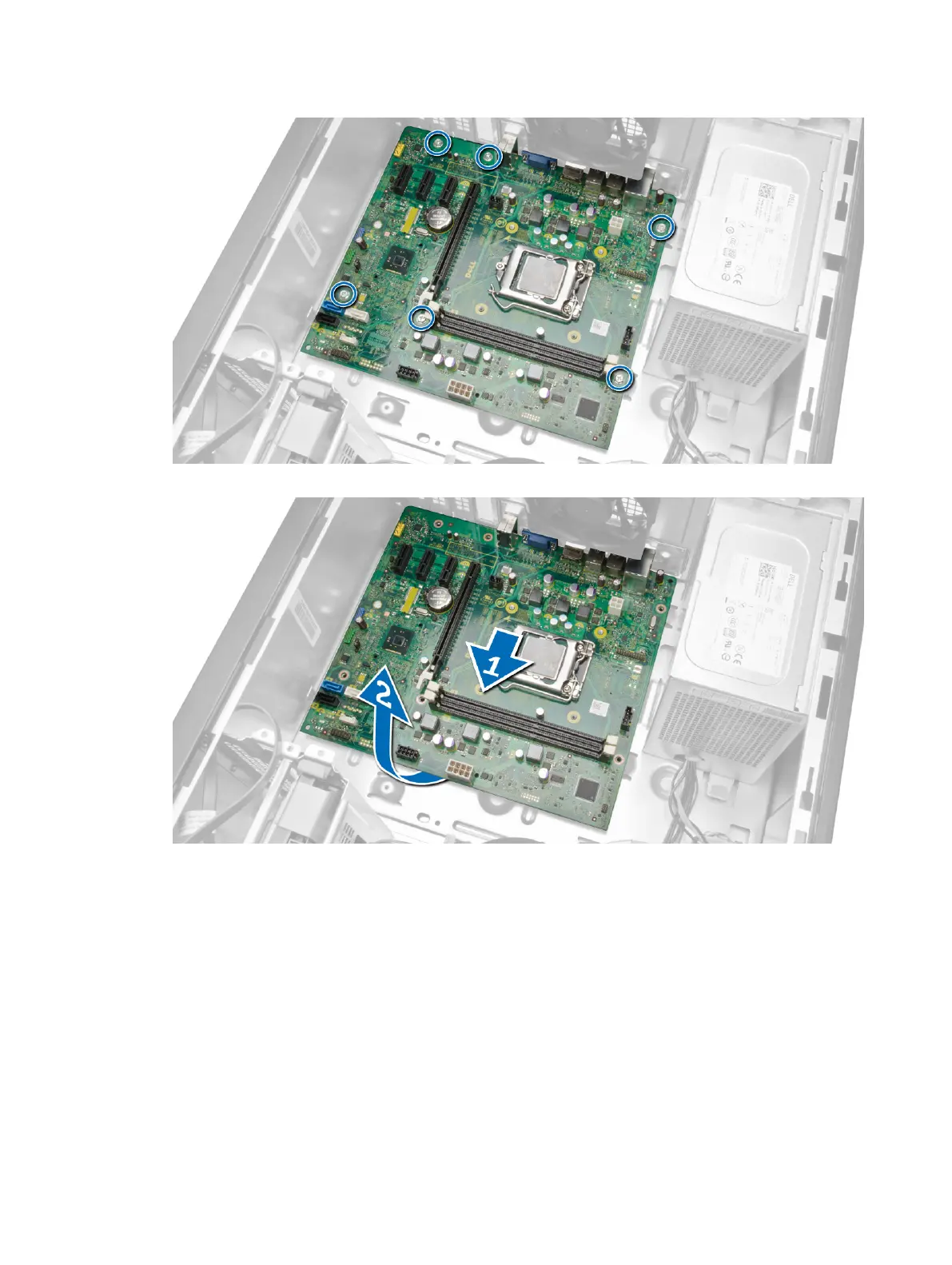 6. Tilt the system board at 45–degrees, and then lift the system board out of the computer.