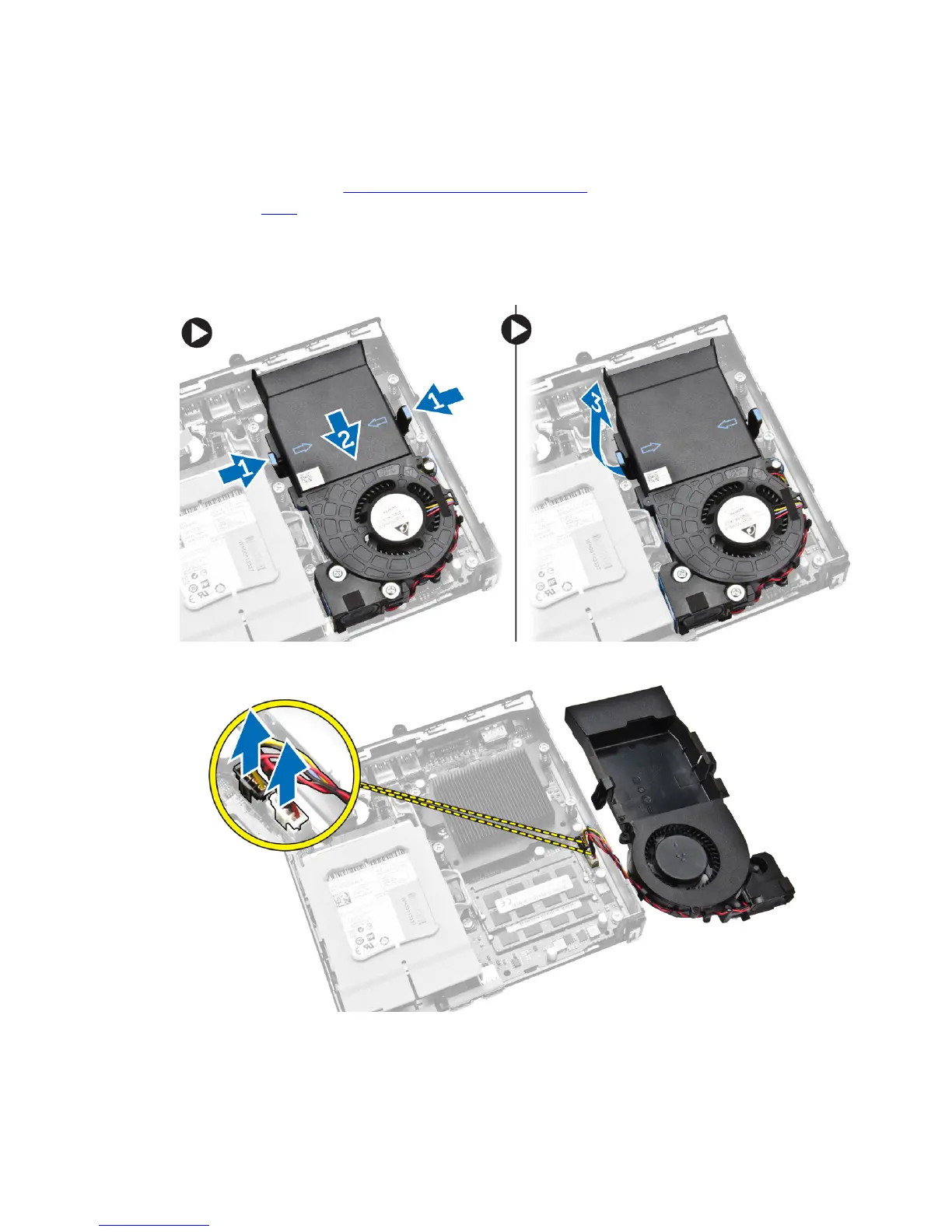 c. Lift the processor fan module away from the computer [3].