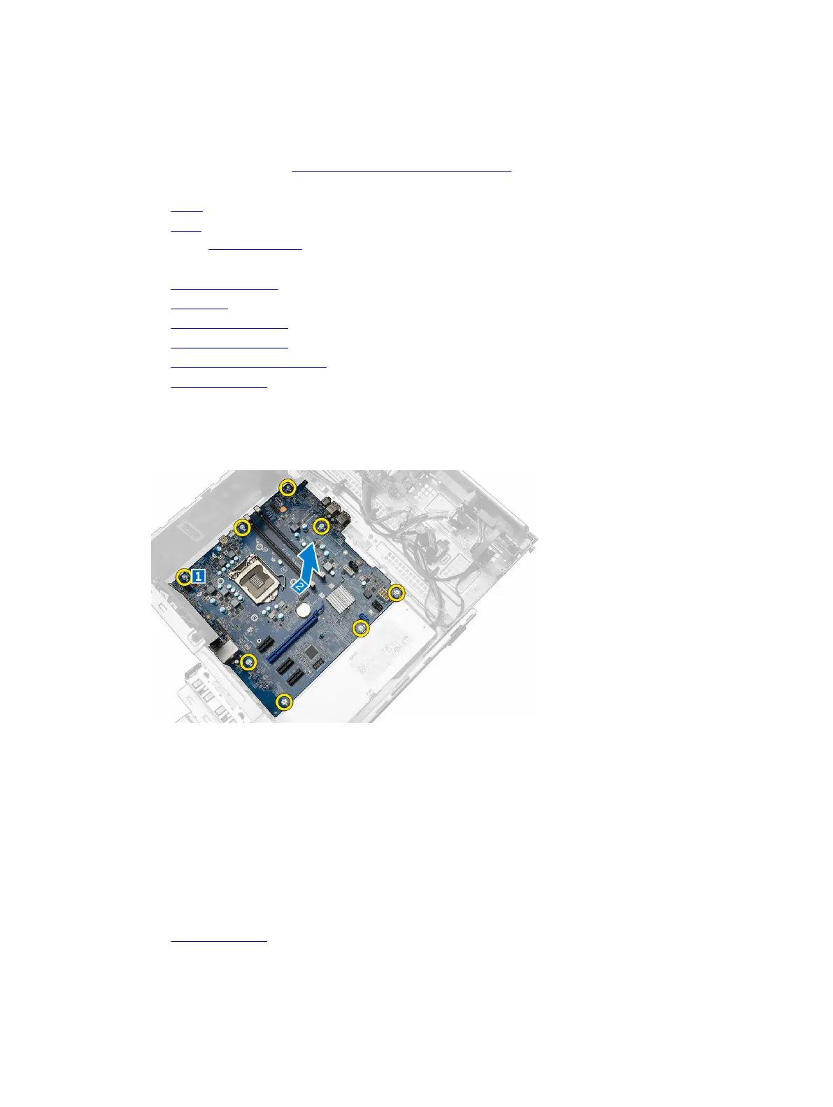 1. Hold the system board by its edges and angle it toward the back of the computer.