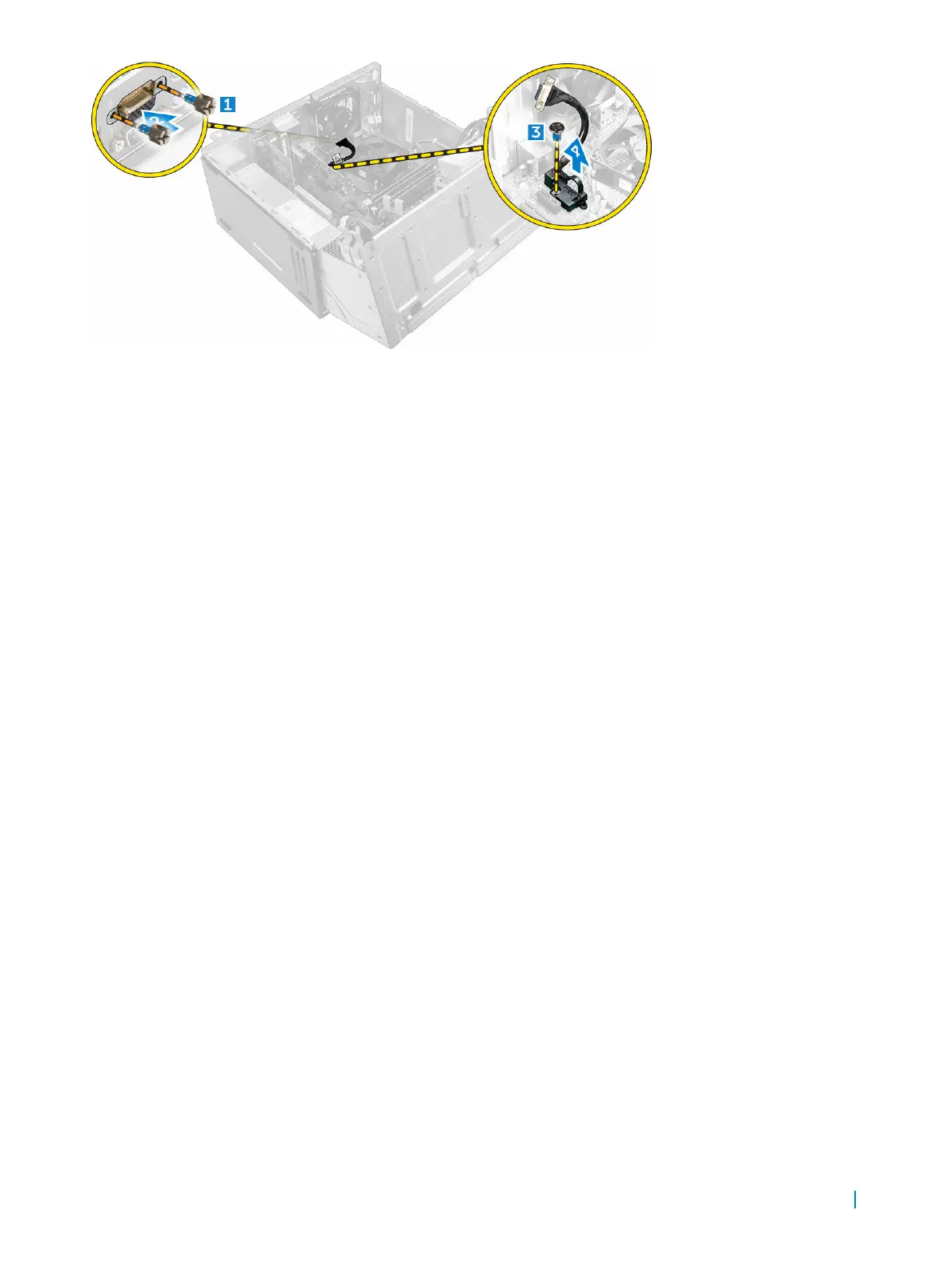 b Unroute the intrusion switch cable from the fan grommet [2].