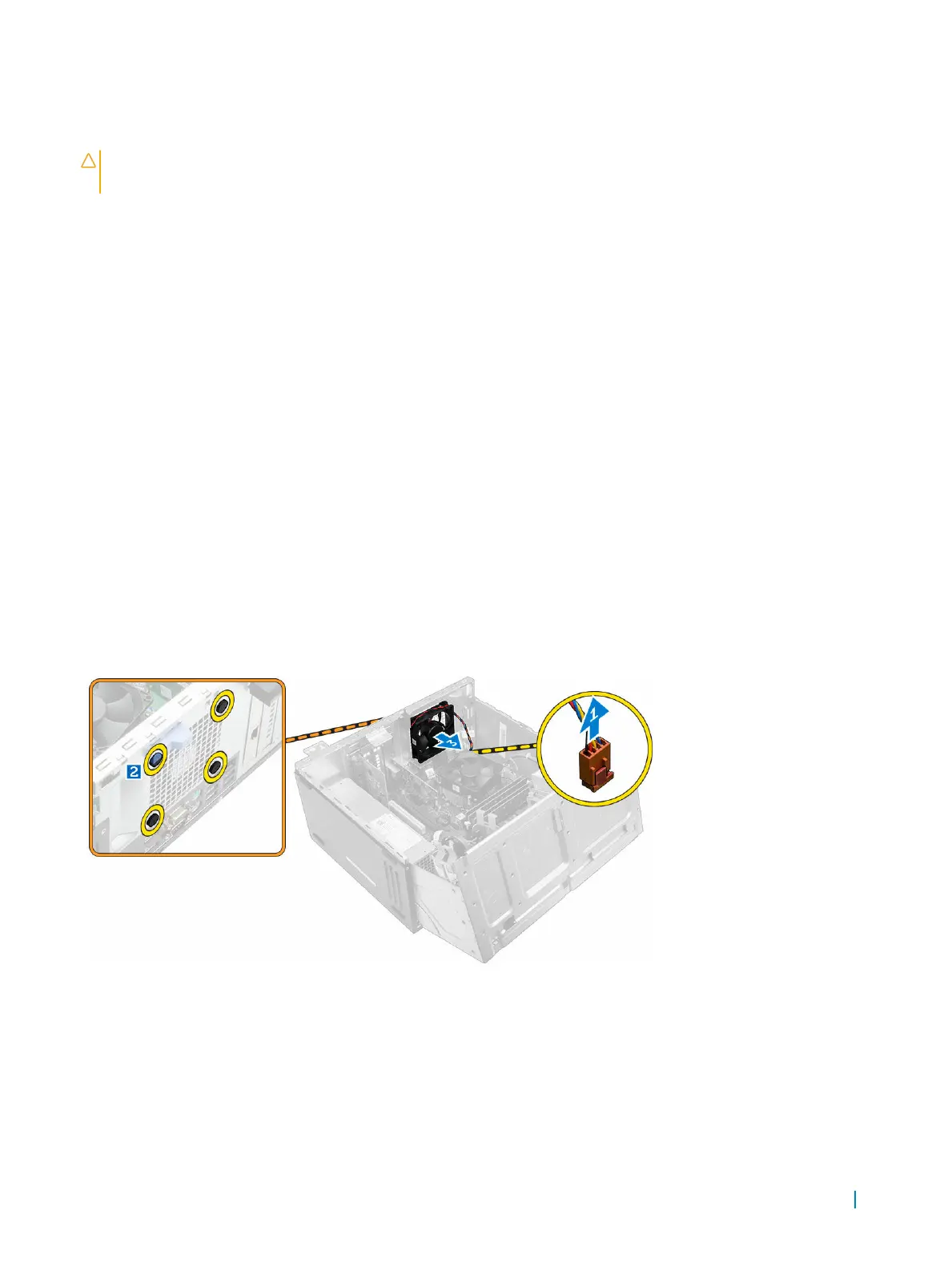 1 Hold the system fan by the sides with the cable end facing the bottom of the computer.