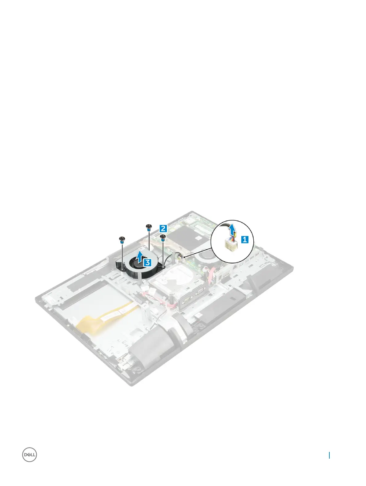 b Remove the M3.5x5 screws that secure the system fan to the system board [2].