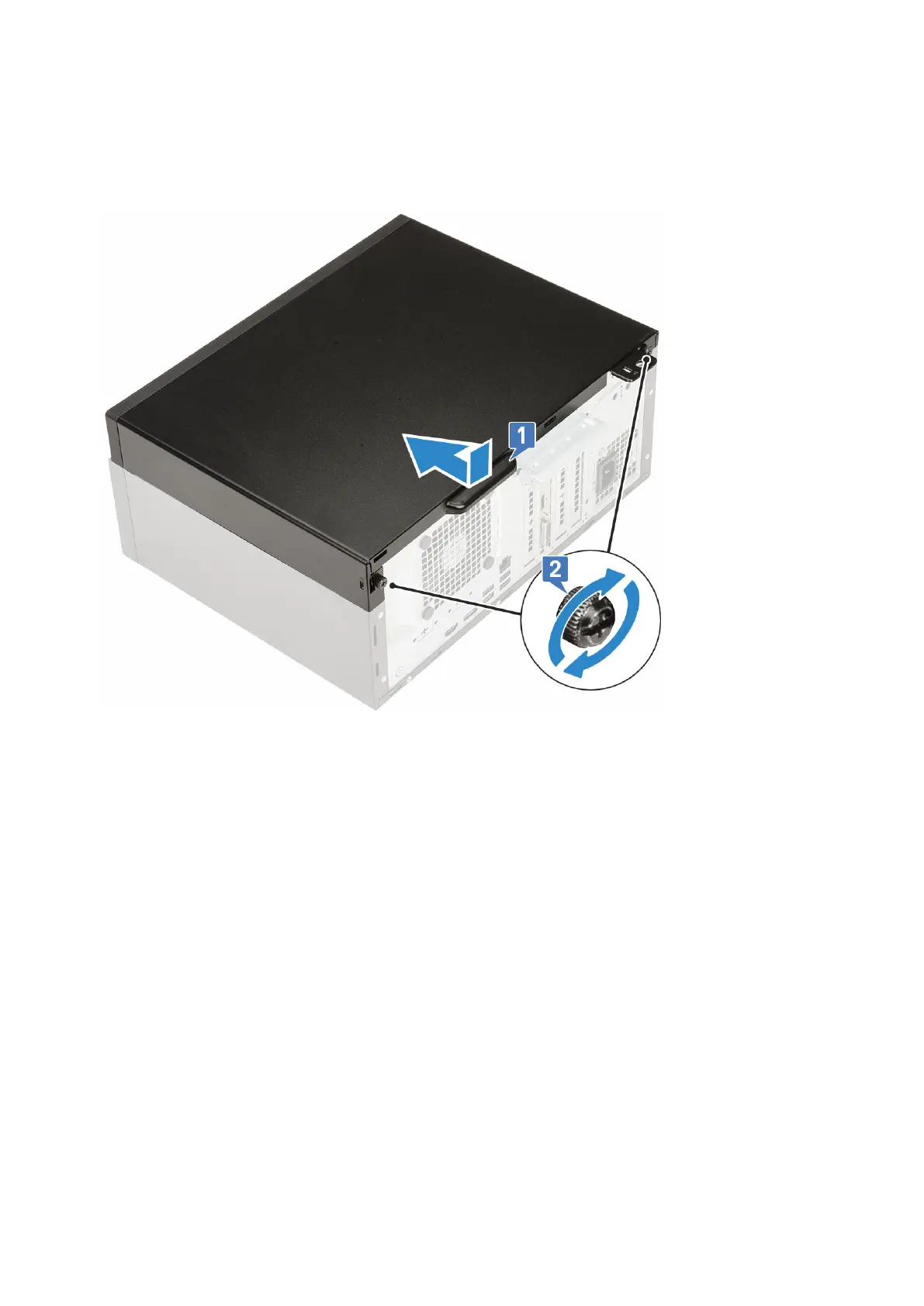 a. Place the cover on the computer, slide it to align it with the chassis and tighten the captive screws to secure the cover