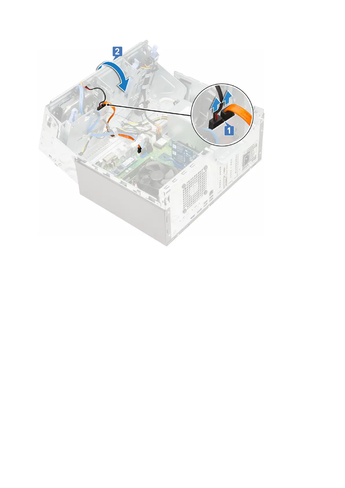 c. Press the blue release tab [1] and slide the optical drive out of the system [2].
