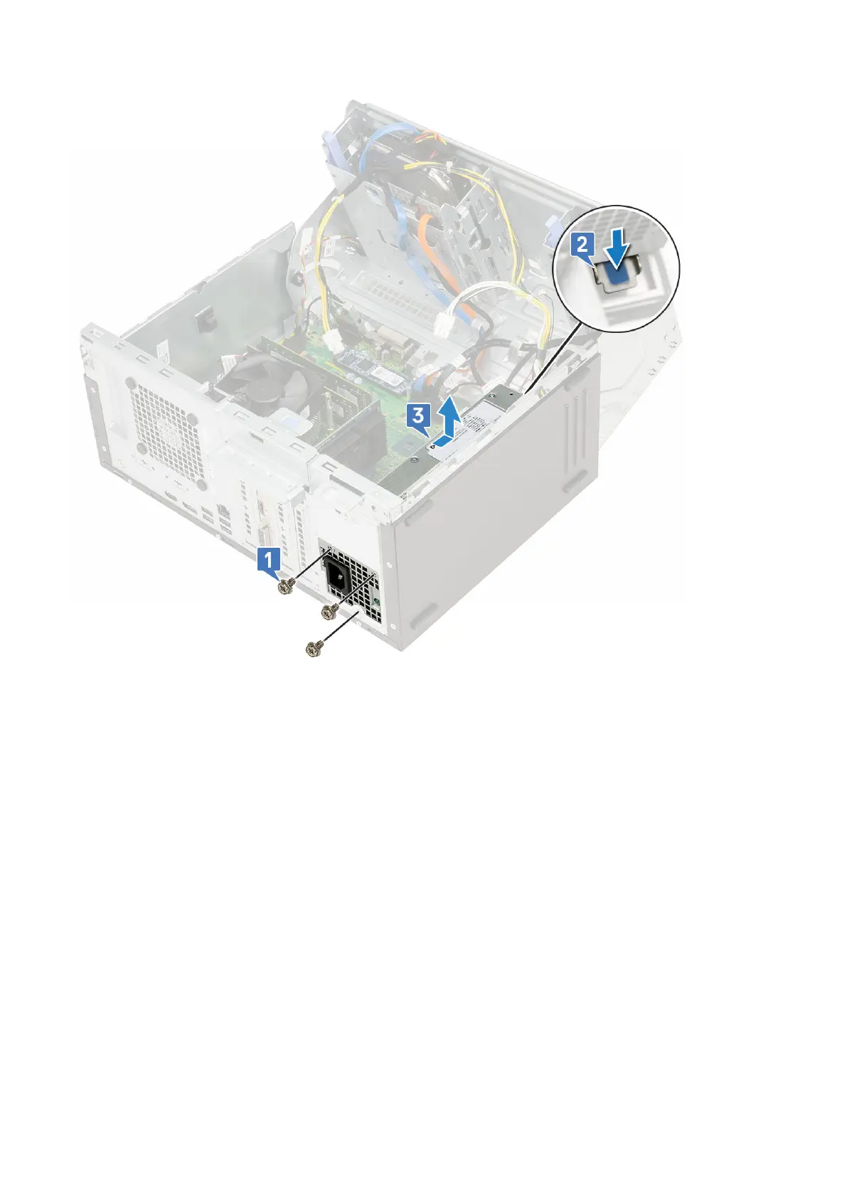 a. Insert the PSU into the PSU slot and slide it towards the back of the system [1], until the release tab clicks into place [2].
