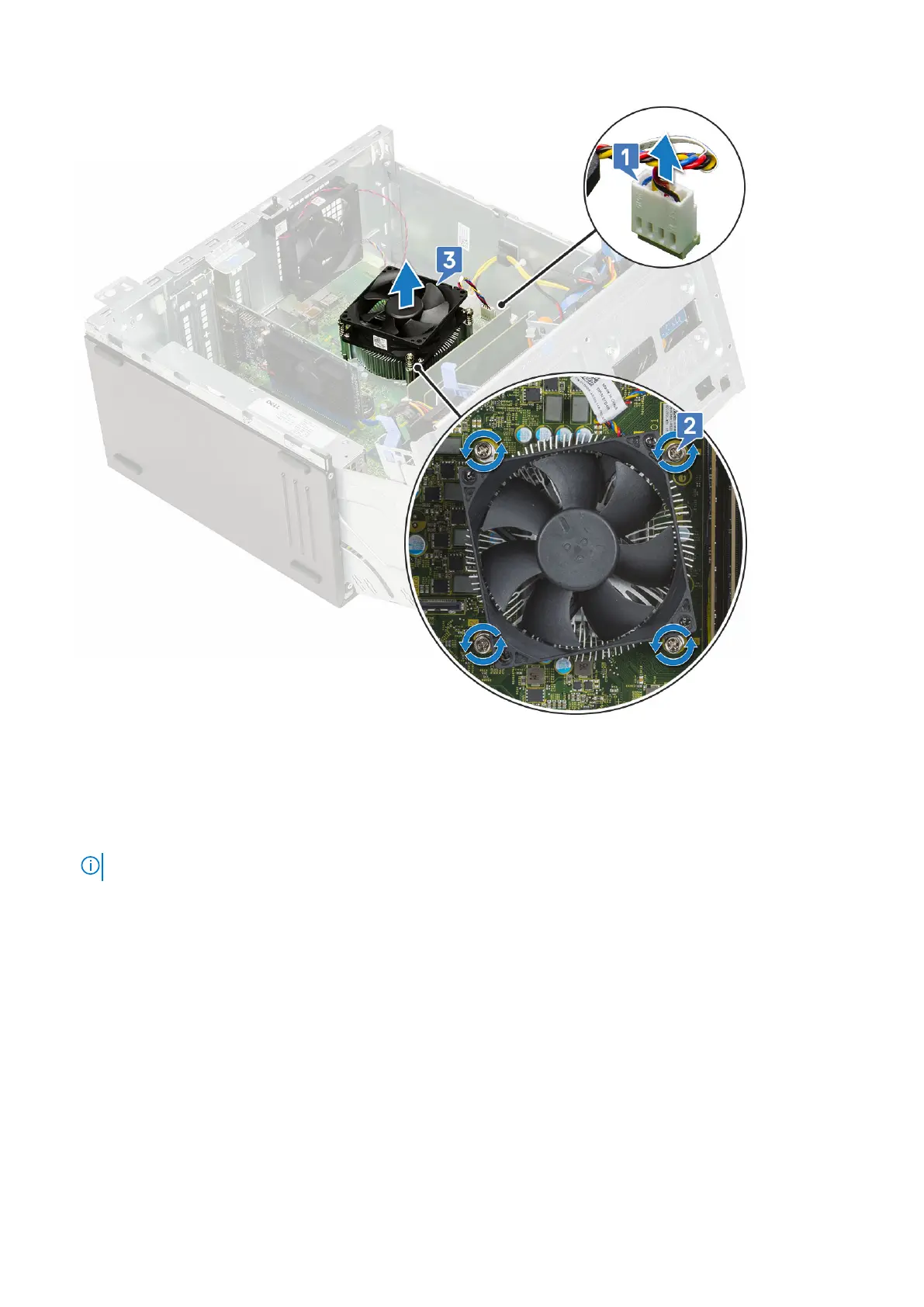 3. Connect the heatsink fan assembly cable from the connector on the system board [3].