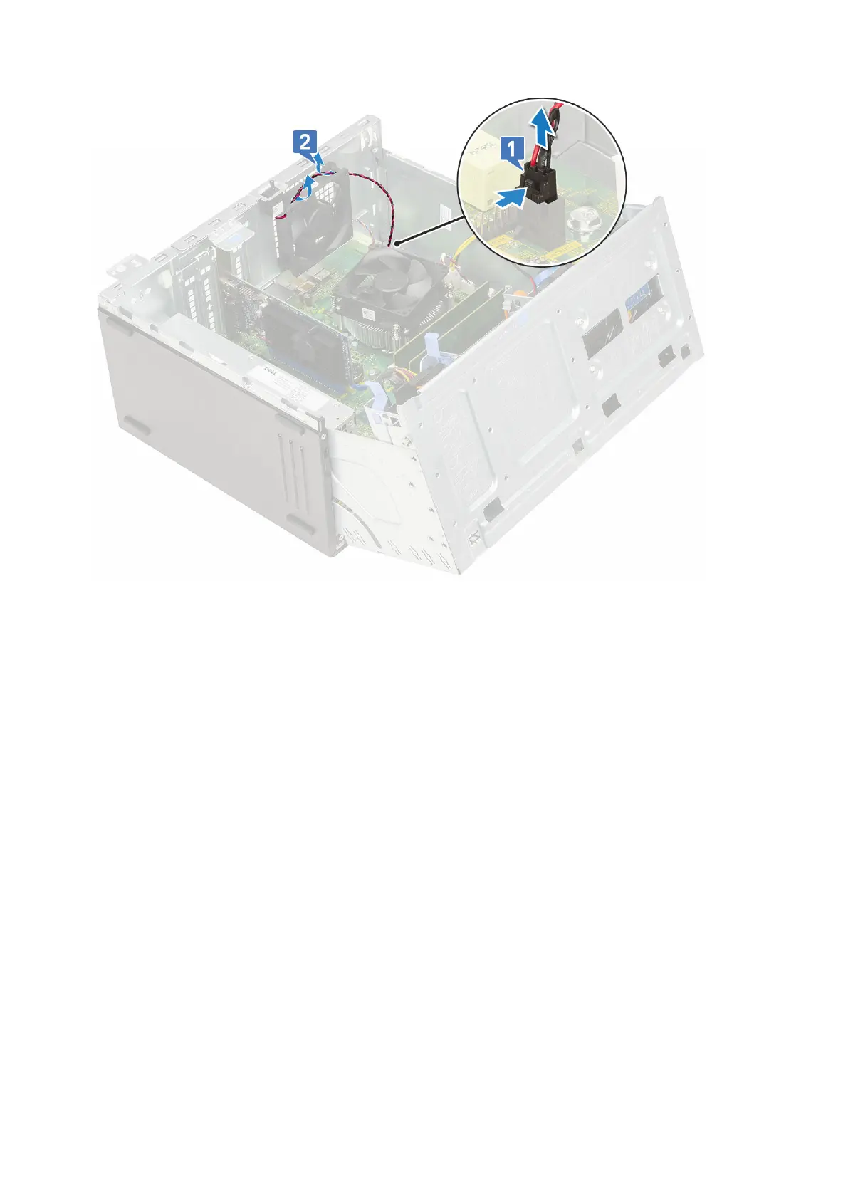 d. Stretch the grommets securing the fan to the computer to ease the removal of the fan [2].