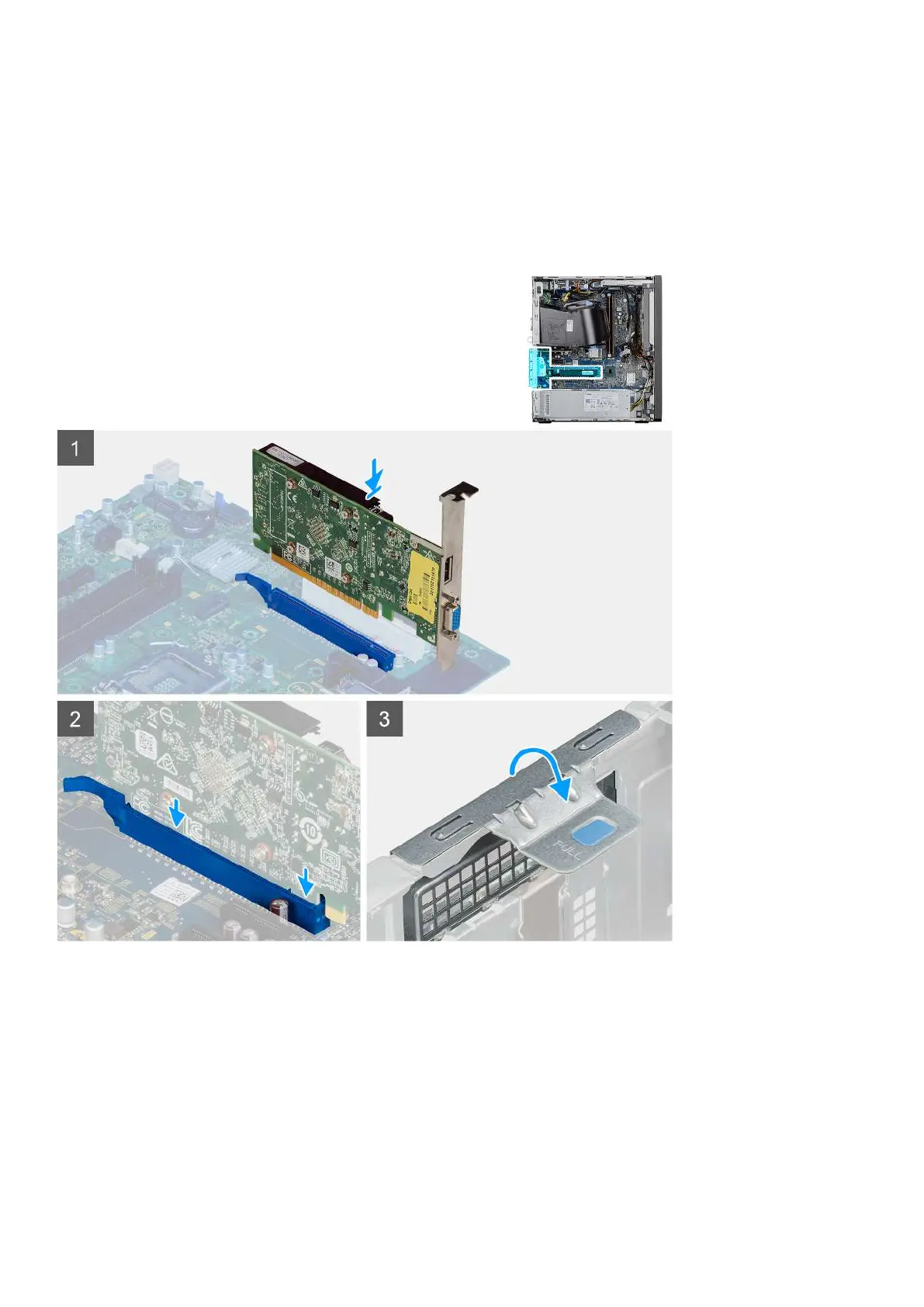 The following images indicate the location of the graphics card and provides a visual representation of the installation procedure.