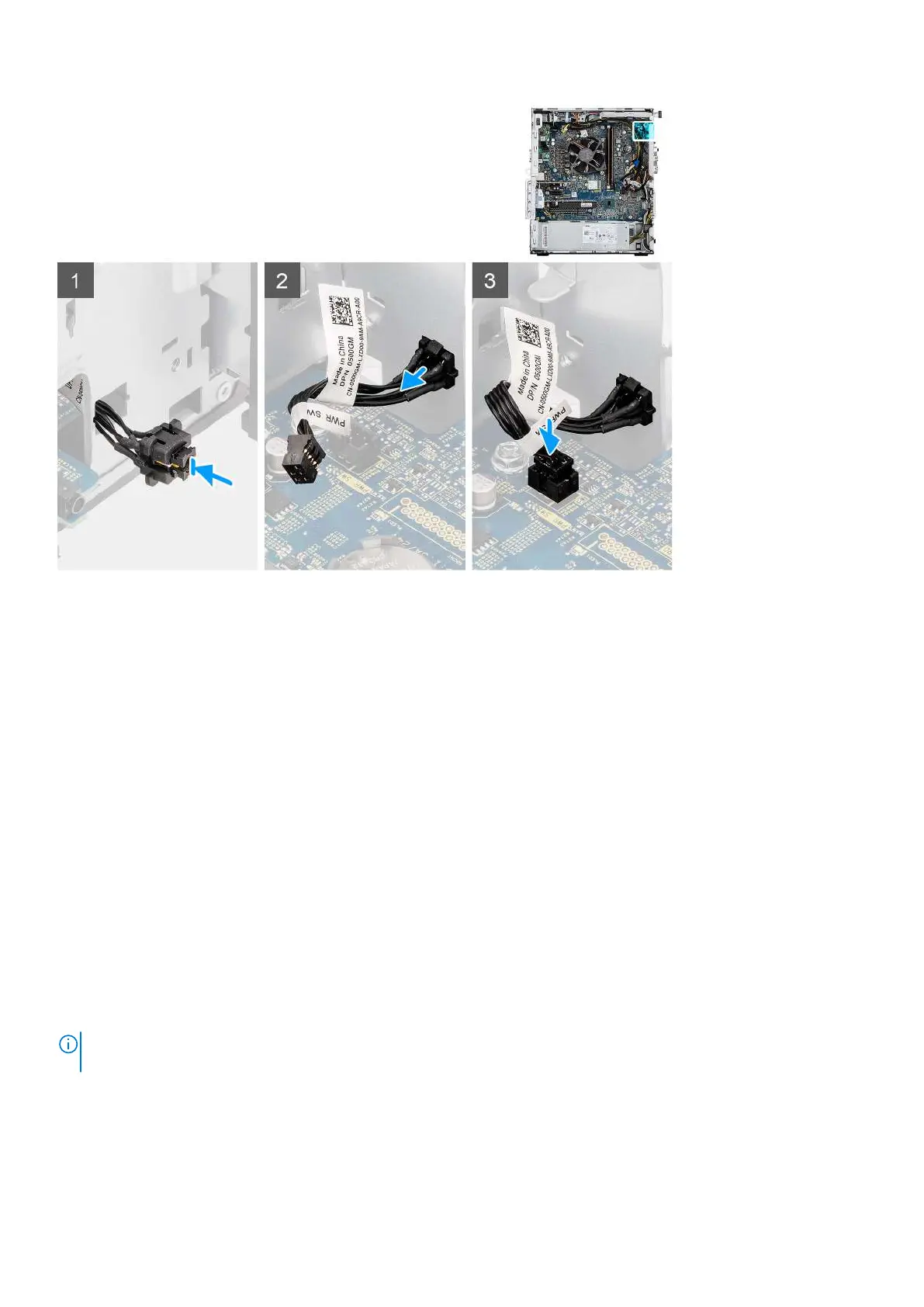 2. Align and connect the power-button cable to the connector on the system board.