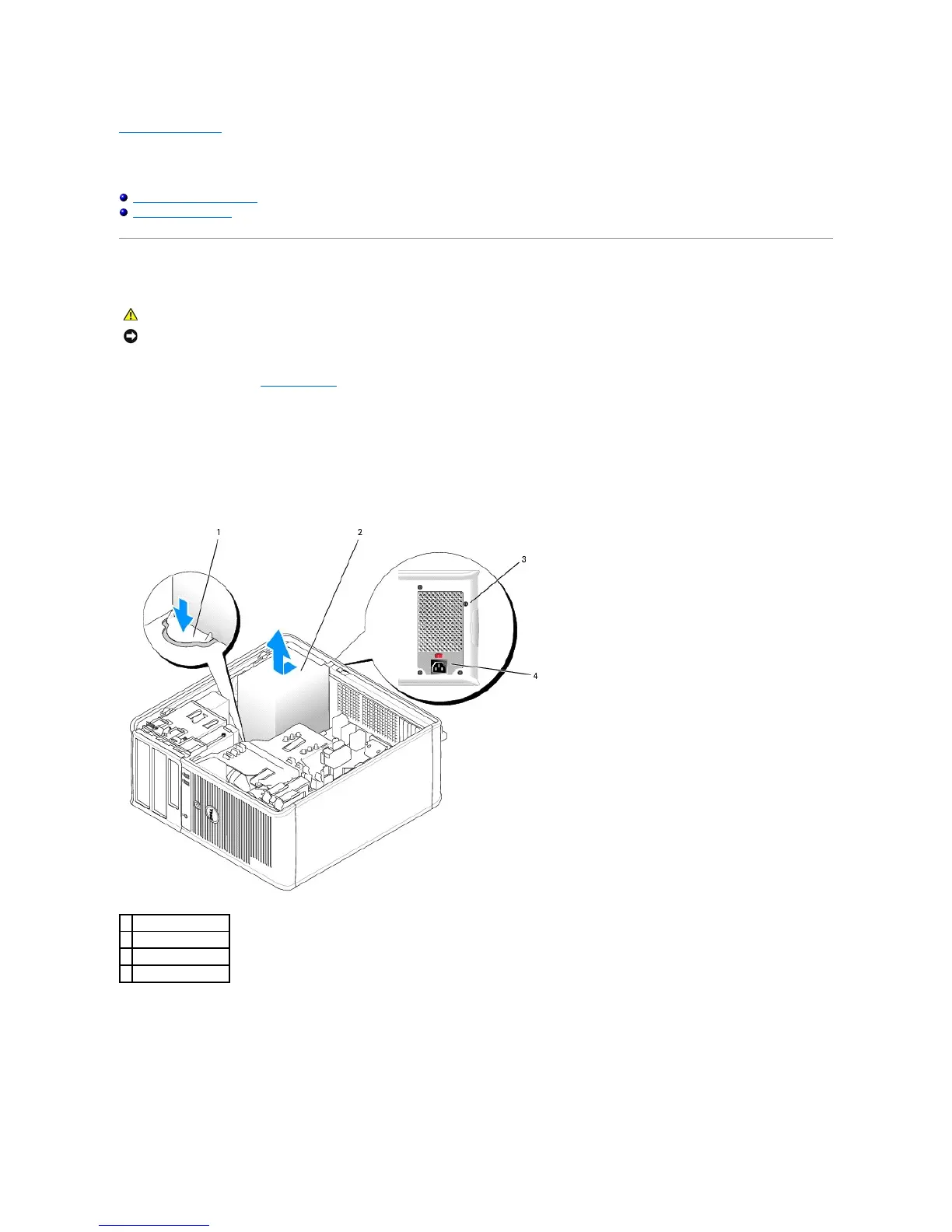 5. Slide the power supply approximately 1 inch towards the front of the computer.