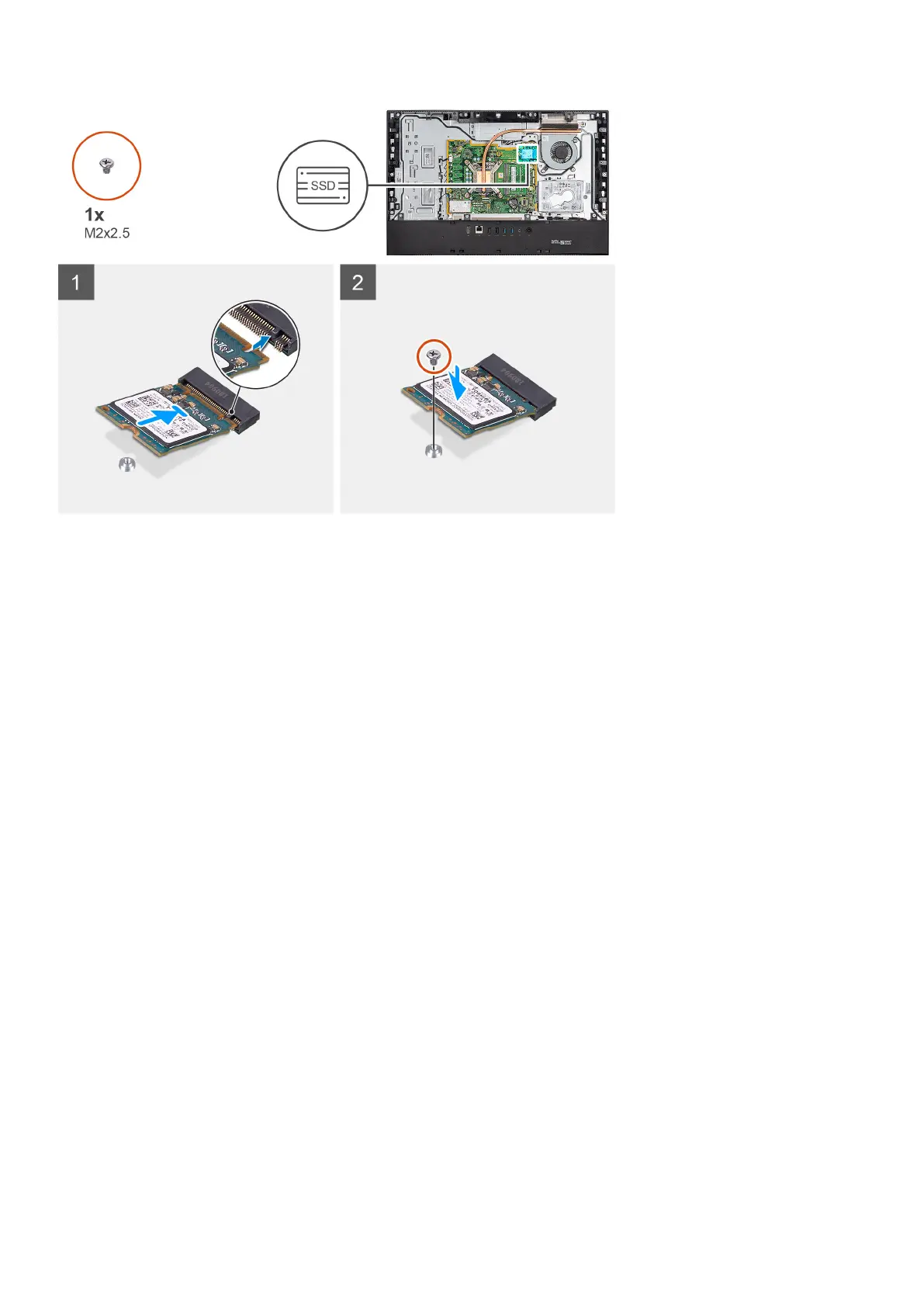 3. Replace the screw (M2x2.5) to secure the solid-state drive to the system board.