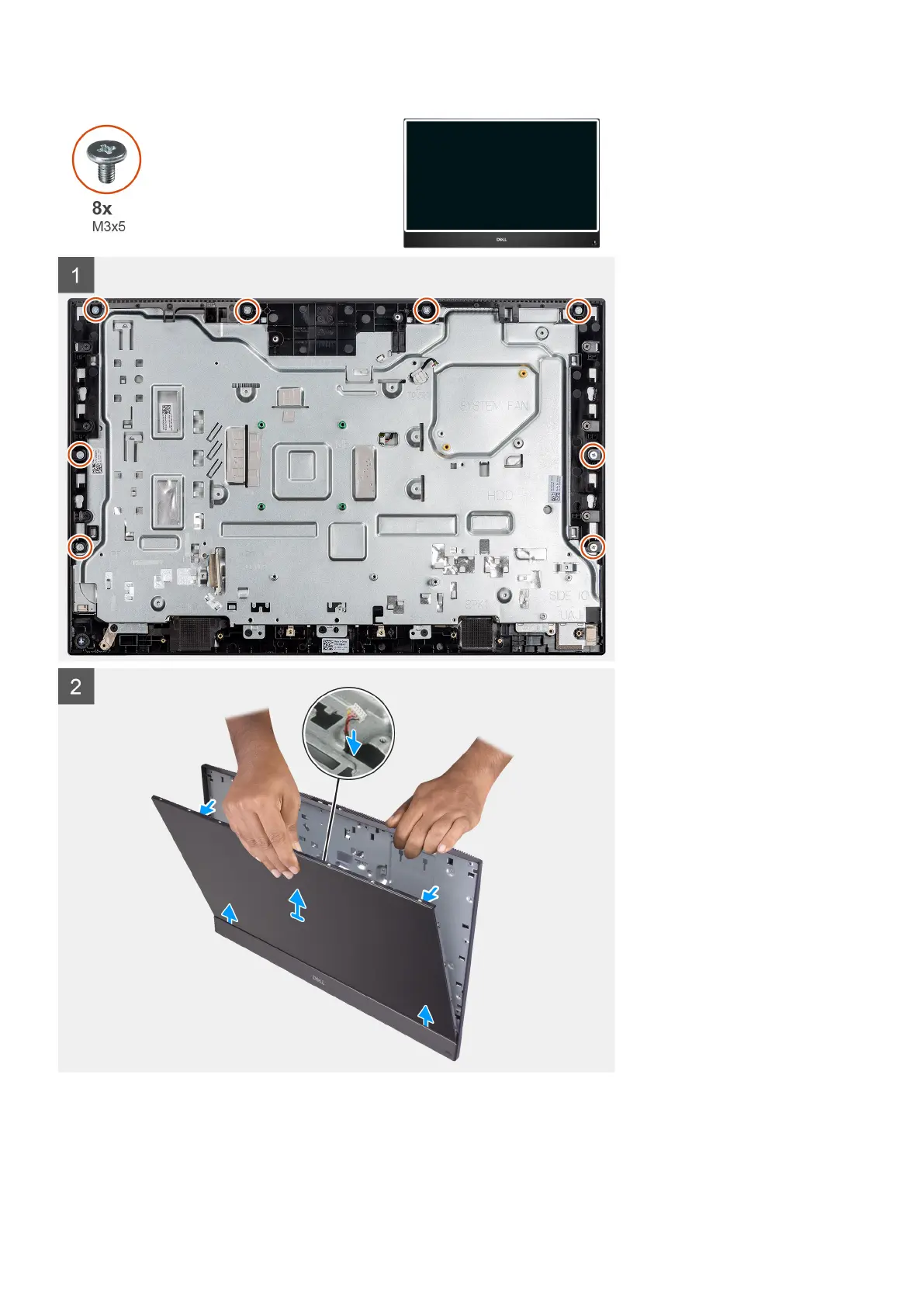 1. Remove the 8 screws (M3x5) that secure the middle frame and display-assembly base to the display panel.