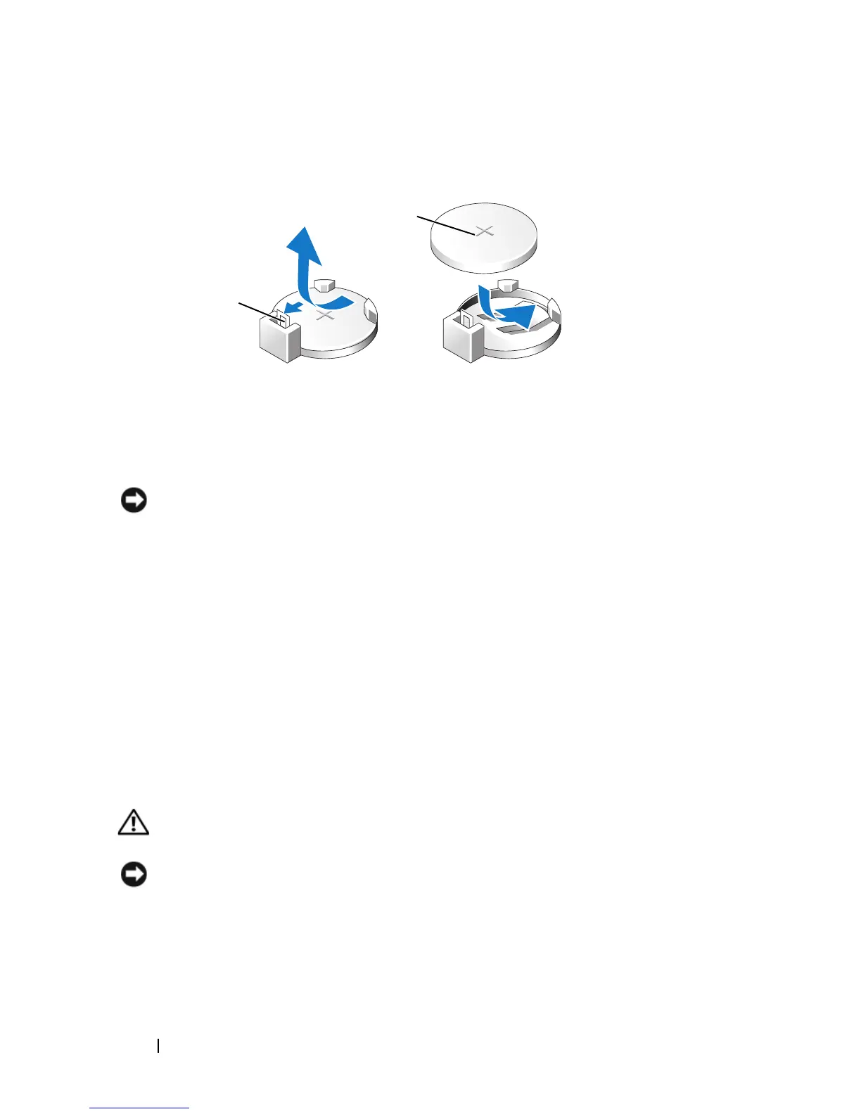 Insert the new battery into the socket with the side labeled "+" facing up,