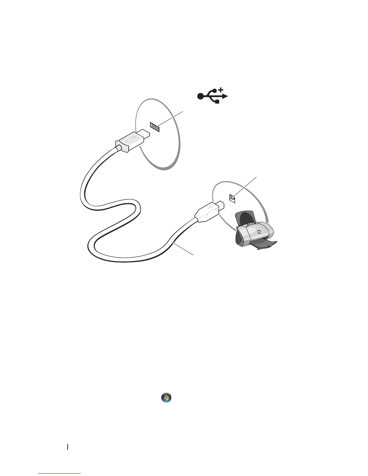 Attach the USB printer cable to the USB connectors on the computer and