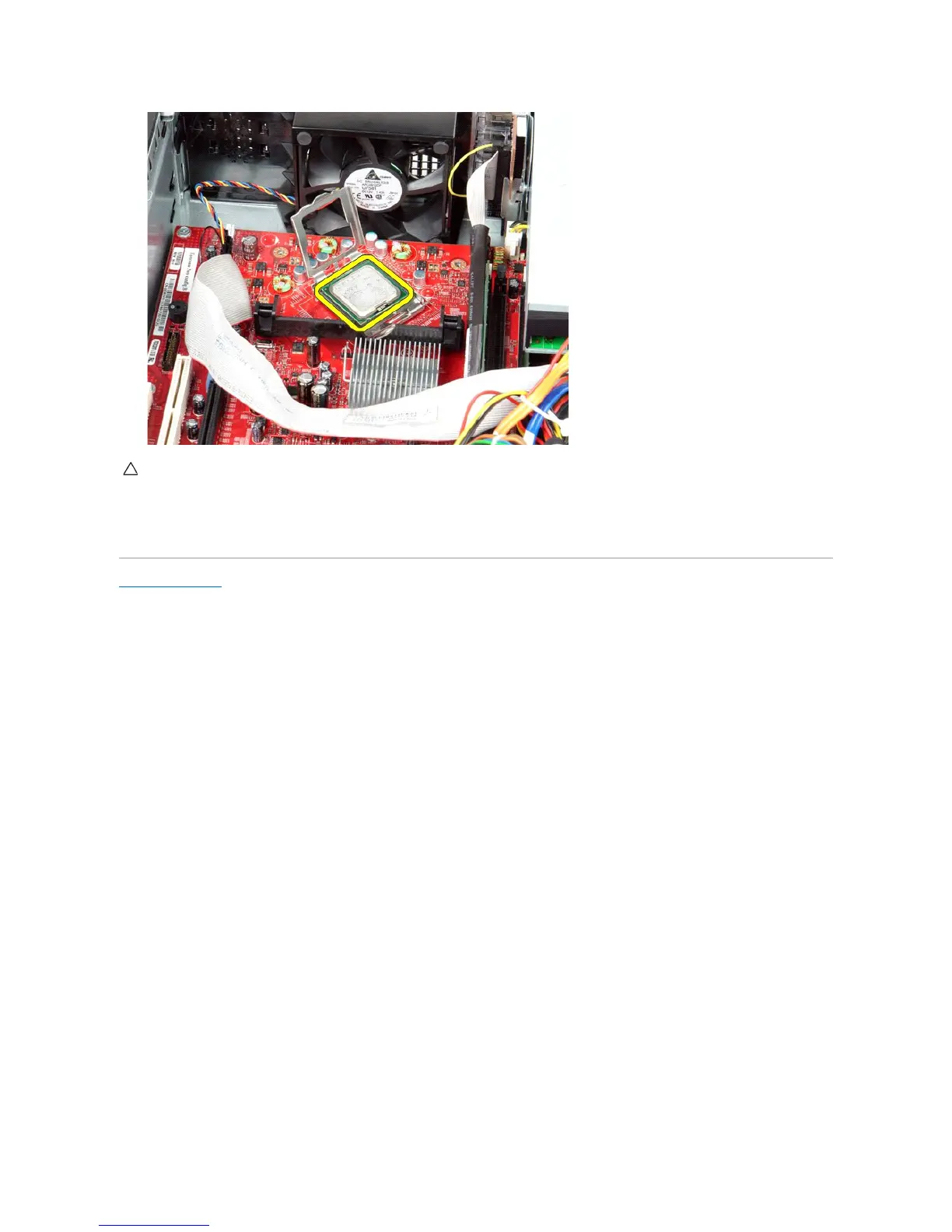 CAUTION: When replacing the processor, do not touch any of the pins inside the socket or allow any objects to fall on the pins in the socket.