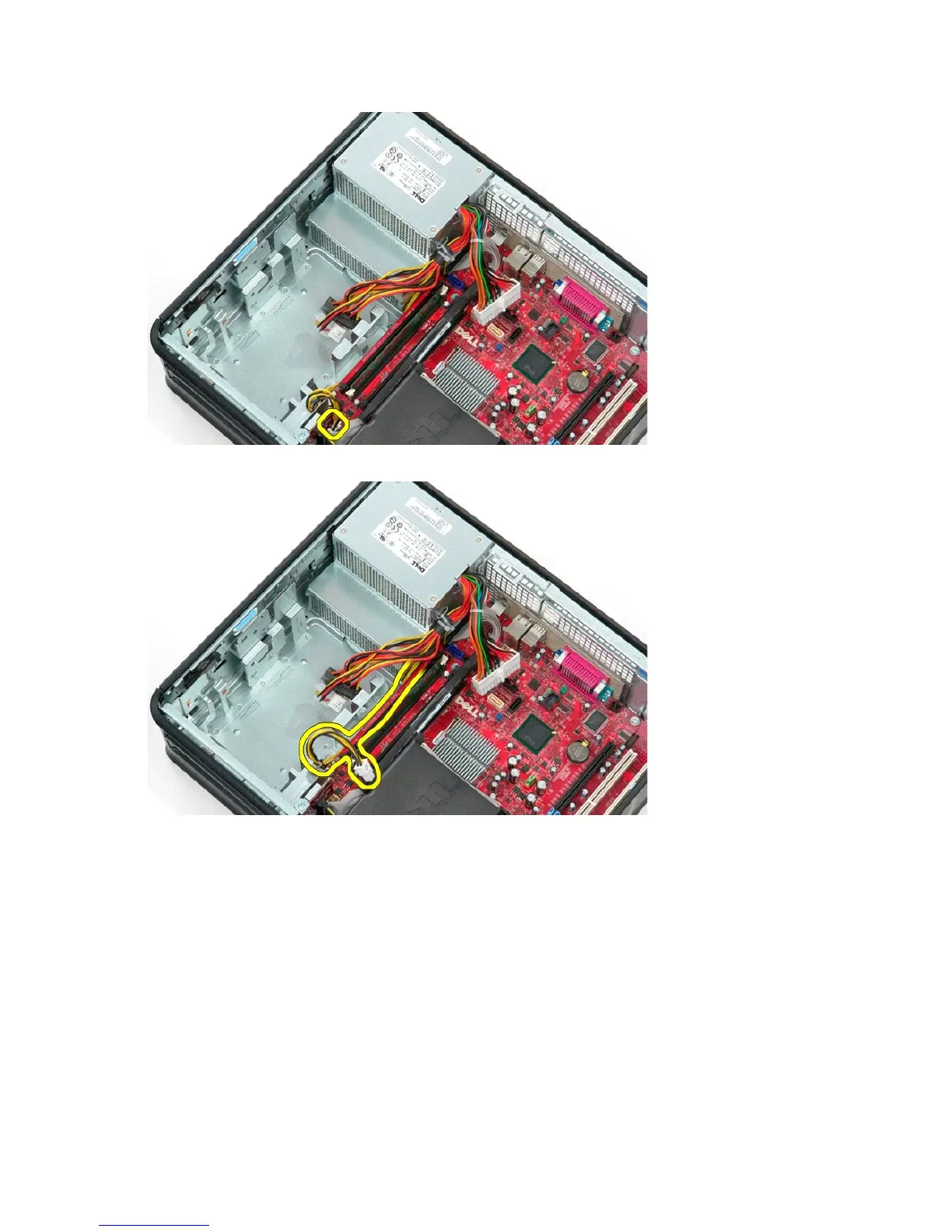 7. Release the processor power connector cable from their routing guides under the system board.