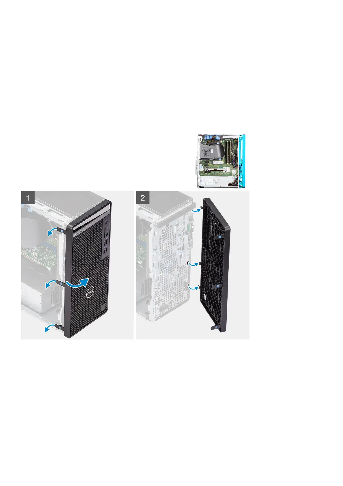 2. Slightly pull the front bezel and gently rotate to release the other tabs on the bezel from the slots in the computer chassis.