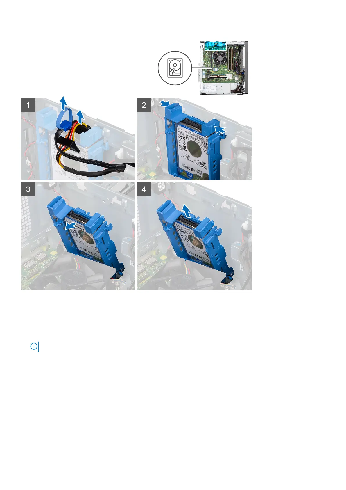 The following images indicate the location of the 2.5-inch hard drive and provide a visual representation of the removal