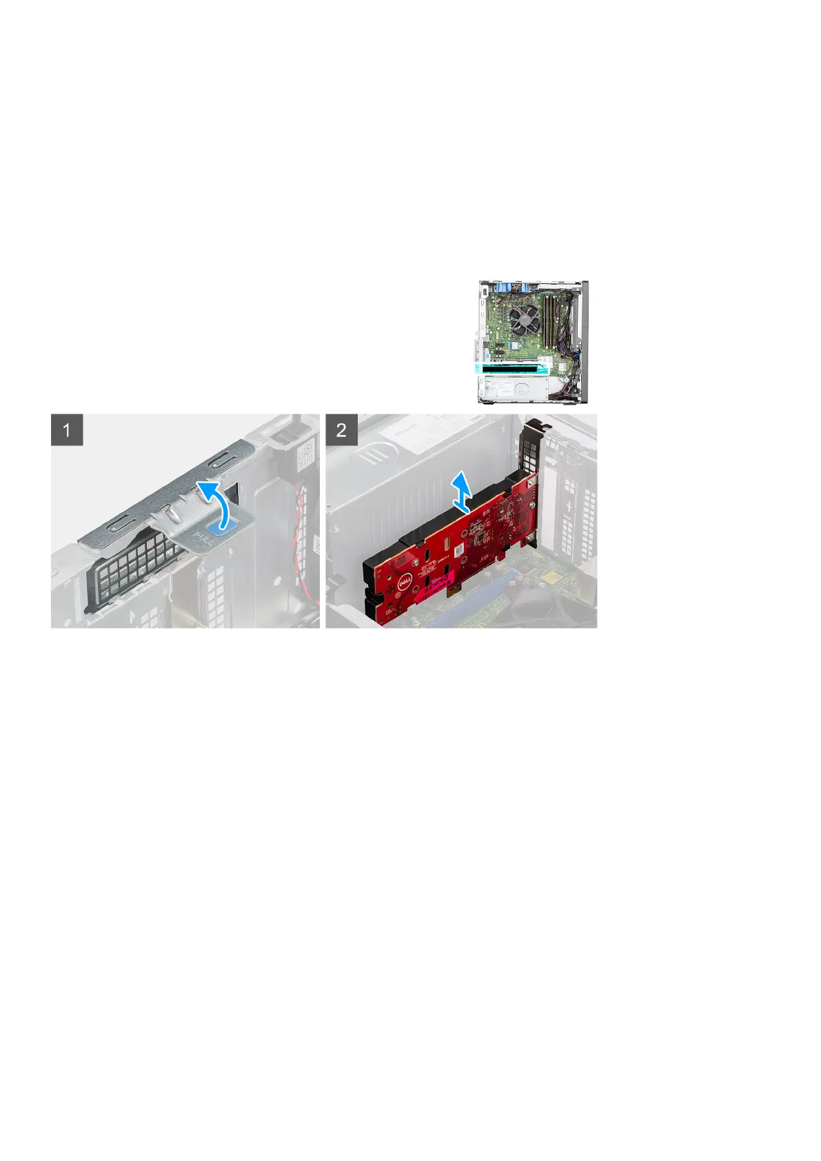 1. Using the tab, lift and open the PCIe door.